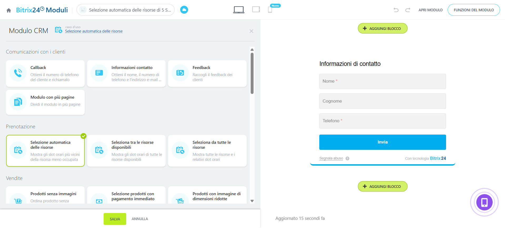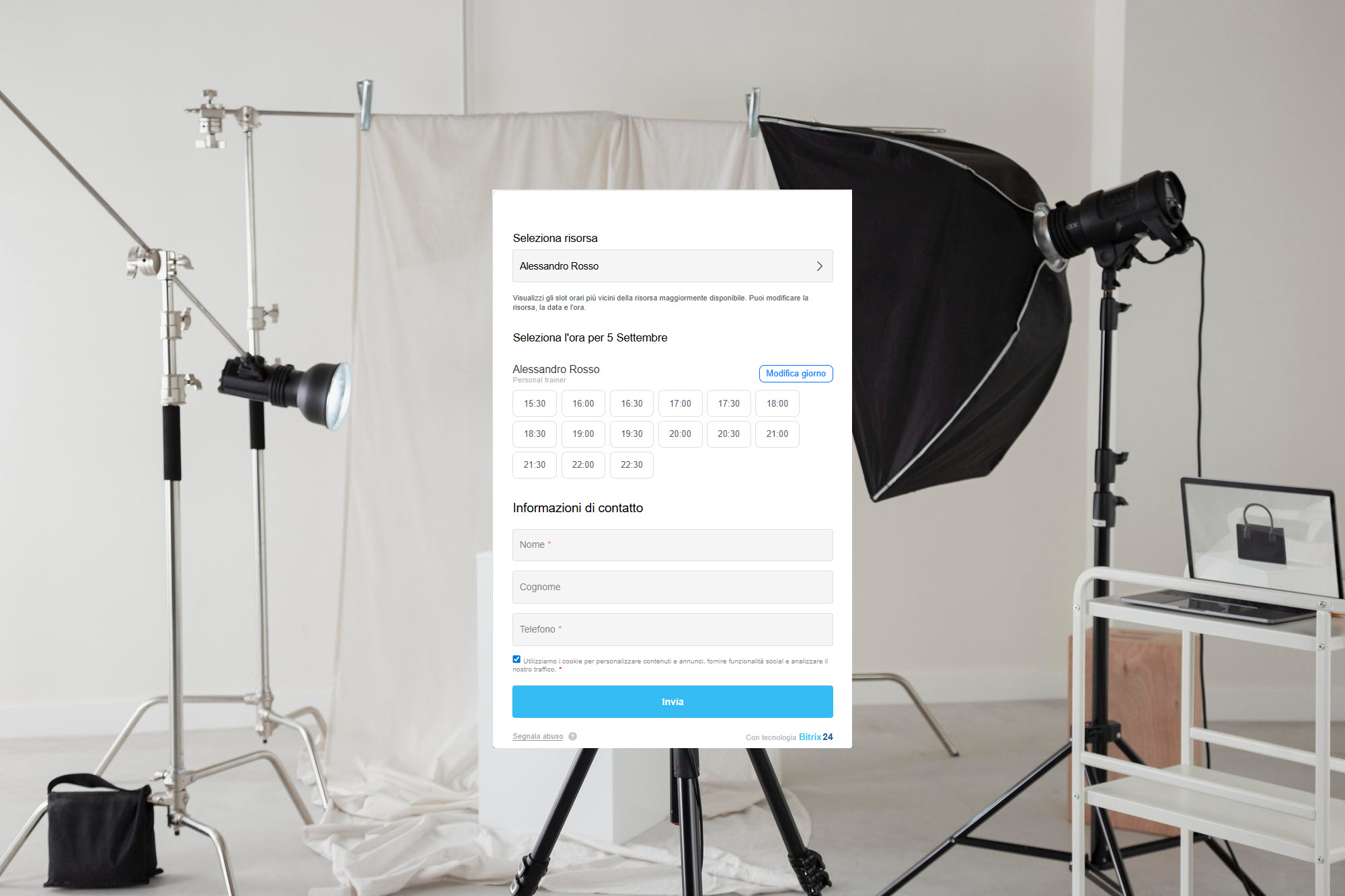 Configura un modulo CRM che permetta ai tuoi clienti di fissare appuntamenti con facilità. Potranno visualizzare le fasce orarie disponibili e prenotare in pochi clic, senza bisogno di assistenza da parte del personale.