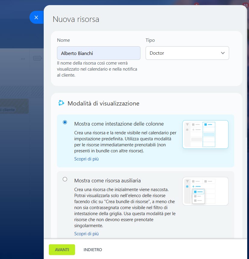 Questa opzione è utile per prenotazioni rapide quando tutte le opzioni disponibili sono ugualmente adatte. Ad esempio, potrebbe essere applicabile a specialisti con le stesse competenze o attrezzature simili.