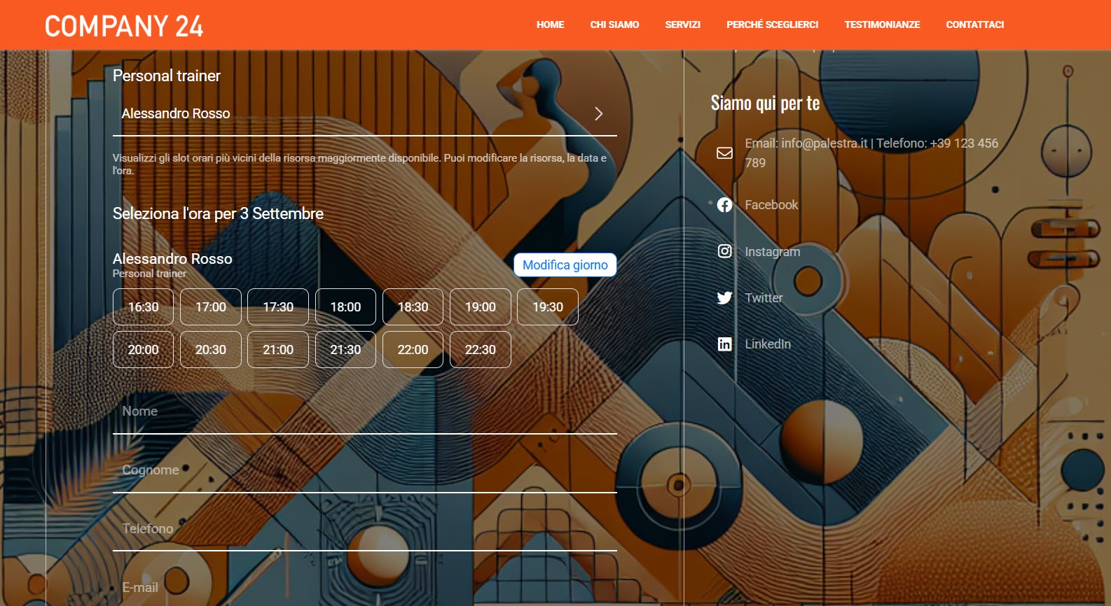 Presso la palestra, i clienti possono prenotare sessioni di allenamento personale con un personal trainer. Poiché molte persone preferiscono sessioni individuali, è fondamentale organizzare il calendario in modo chiaro per evitare sovrapposizioni. È qui che la prenotazione online può essere di grande aiuto.