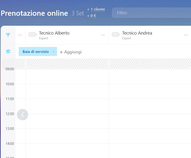 - Creare due tipi di risorse: primarie (tecnici) e aggiuntive (baie di servizio).