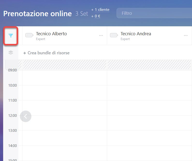 Se necessario, puoi visualizzare la risorsa aggiuntiva sulla bacheca del calendario facendo clic sull'icona dell'imbuto. Questo creerà una vista personalizzata per l'agente.