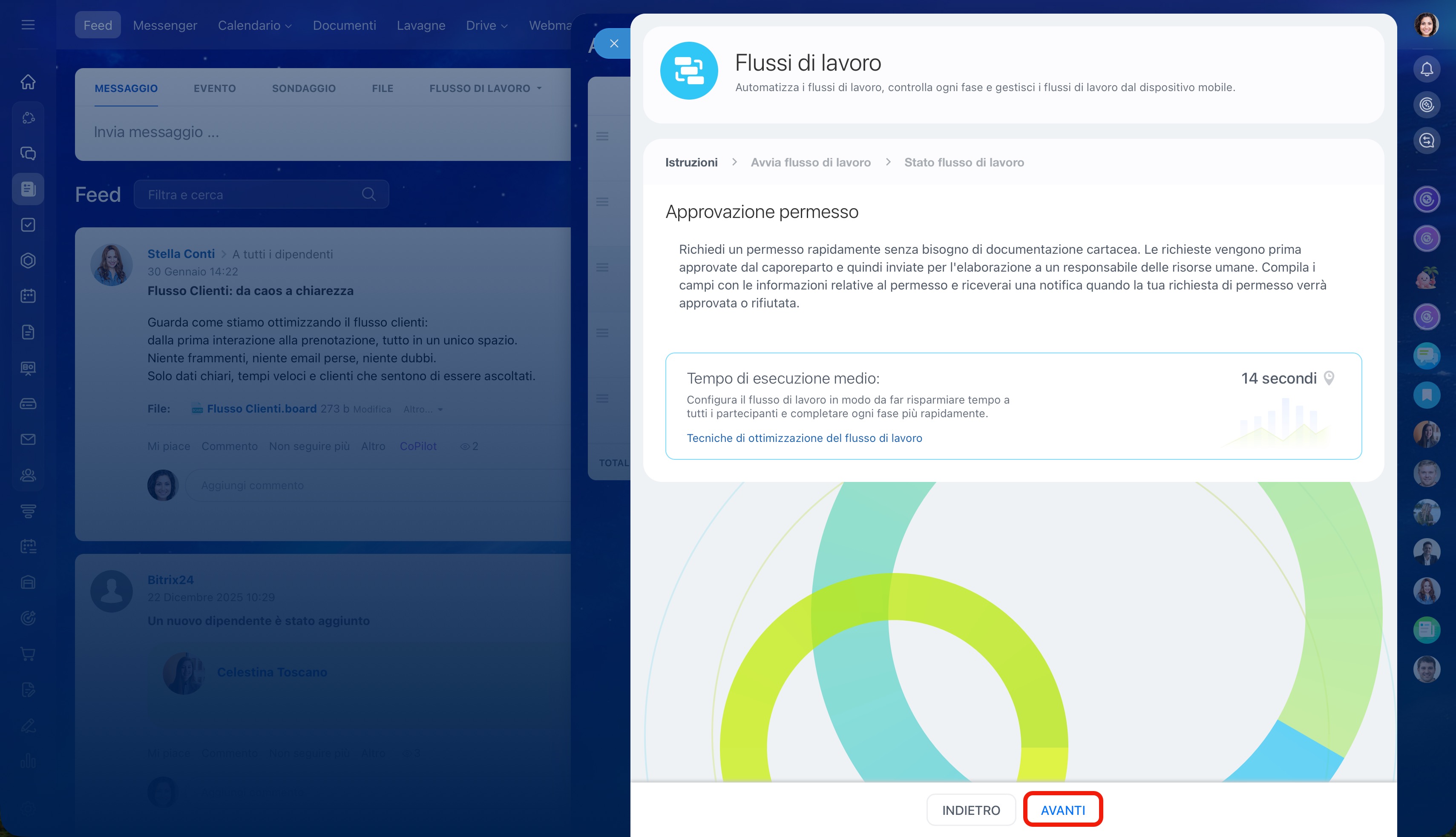 Seleziona "Approvazione permesso" e clicca su Avvia. Poi clicca su Avanti.