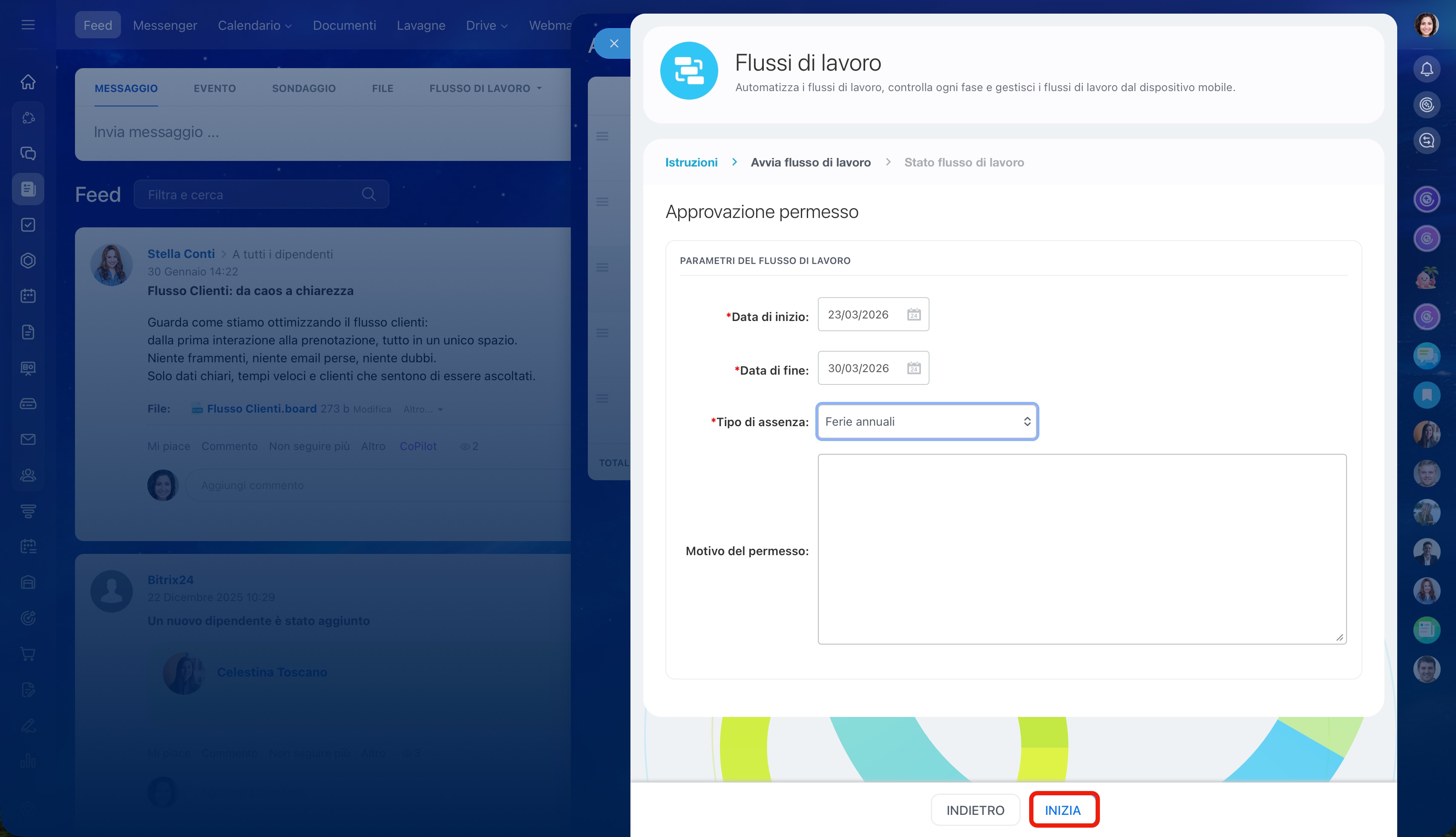 Come avviare il flusso di lavoro "Approvazione permesso"