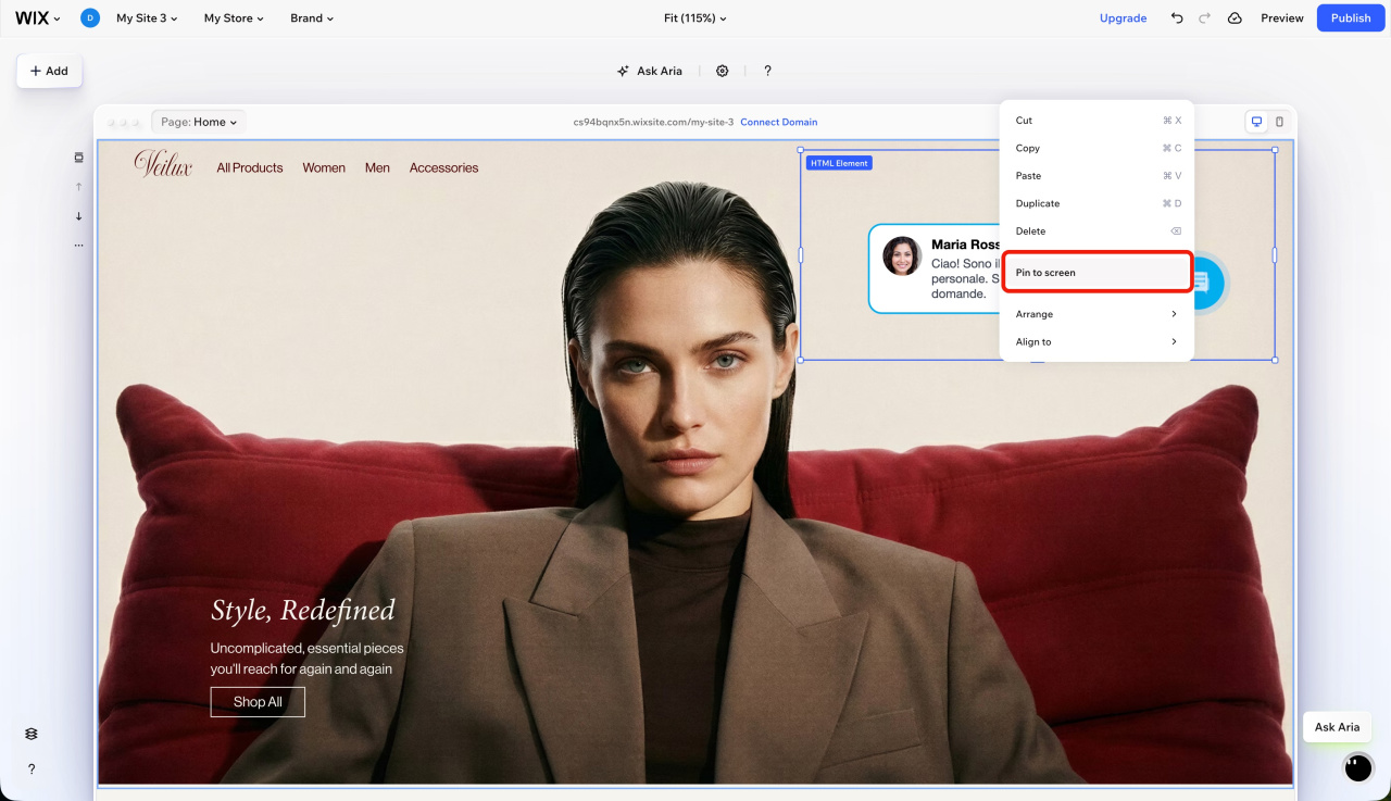 1. Fai clic con il tasto destro sul blocco con il widget e seleziona Fissa sullo schermo (Pin to screen).