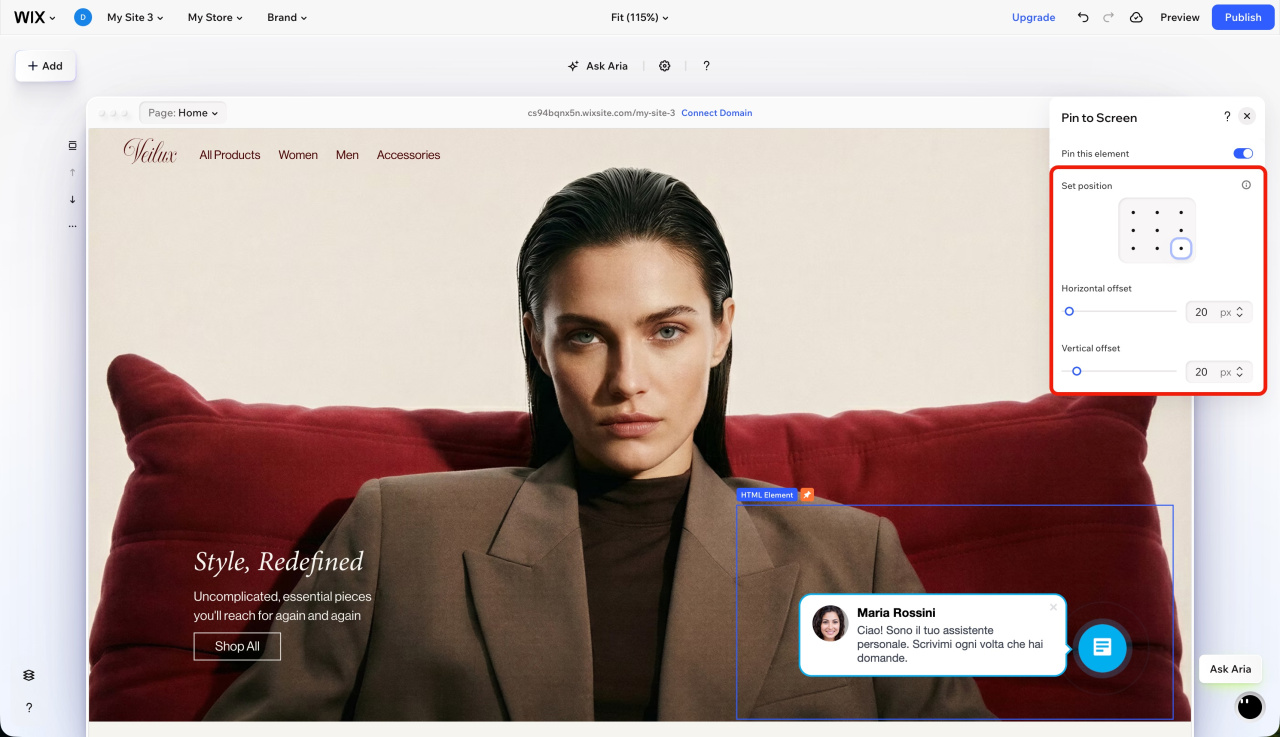 Per evitare che il widget scompaia durante lo scorrimento della pagina, fissalo sullo schermo.