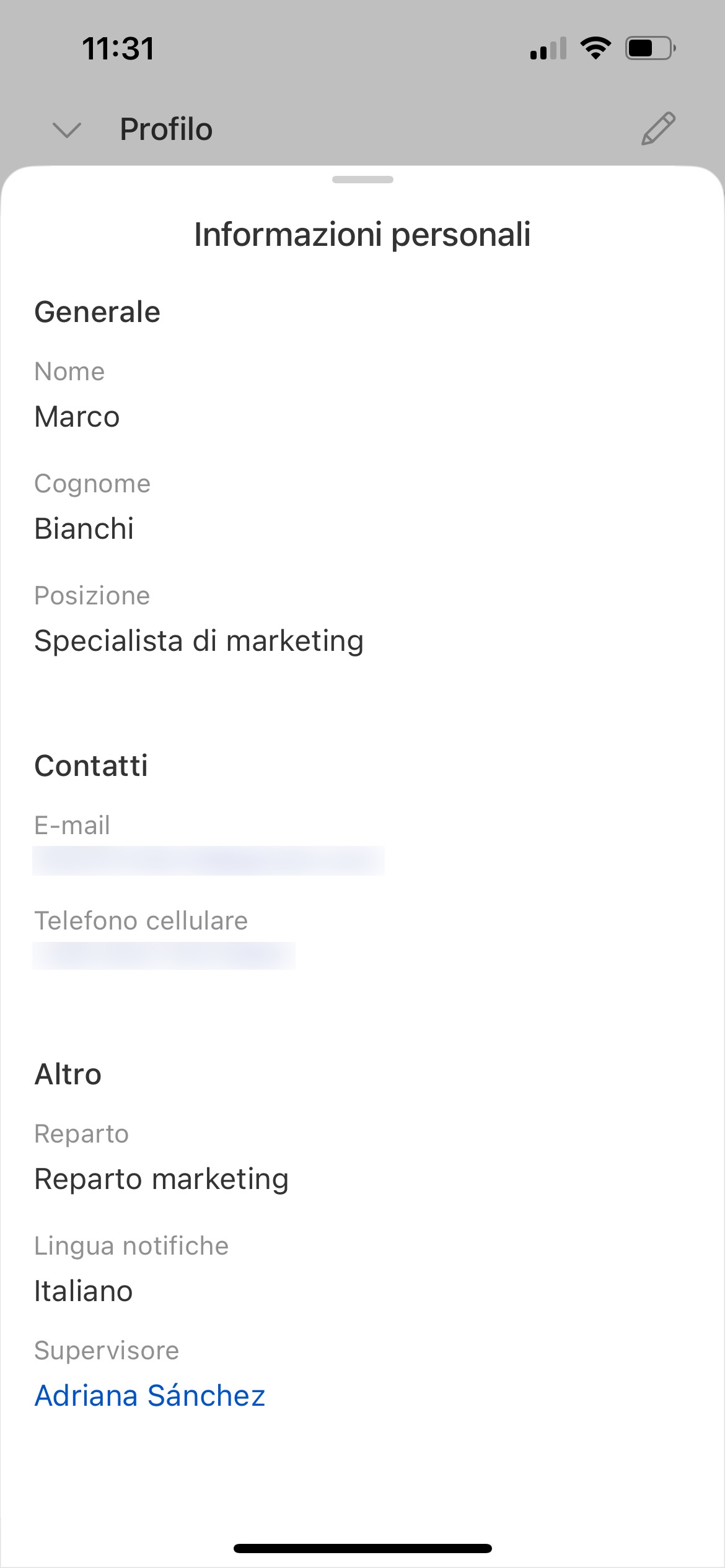 Il profilo include sezioni per uso personale. Queste non sono visibili ai colleghi.