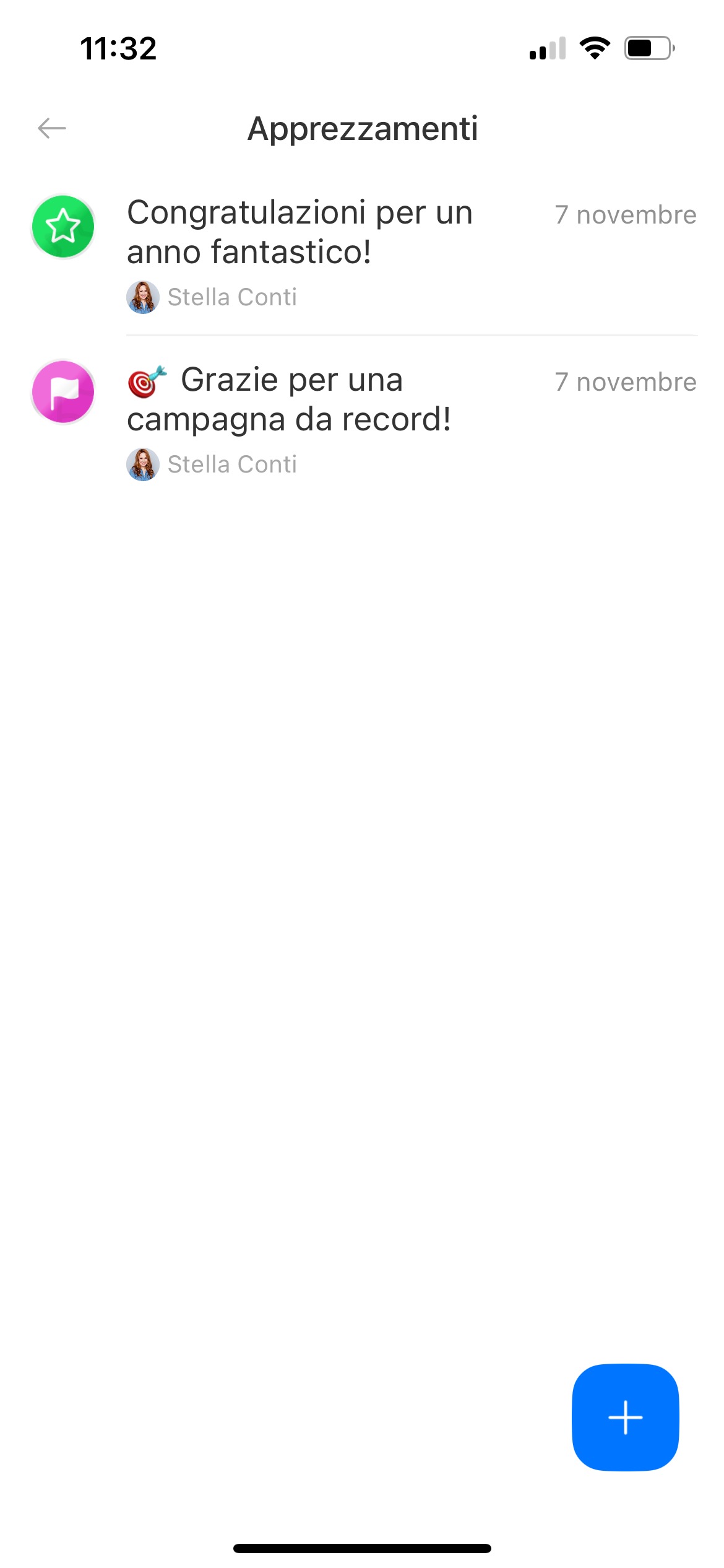 Apprezzamenti. Questa sezione conserva i post con apprezzamenti da parte dei colleghi. Ogni apprezzamento appare sotto forma di icona: like, stella, trofeo, ecc. Le icone e il loro conteggio sono visibili a tutti gli utenti, mentre i link ai post sono disponibili solo per i destinatari.