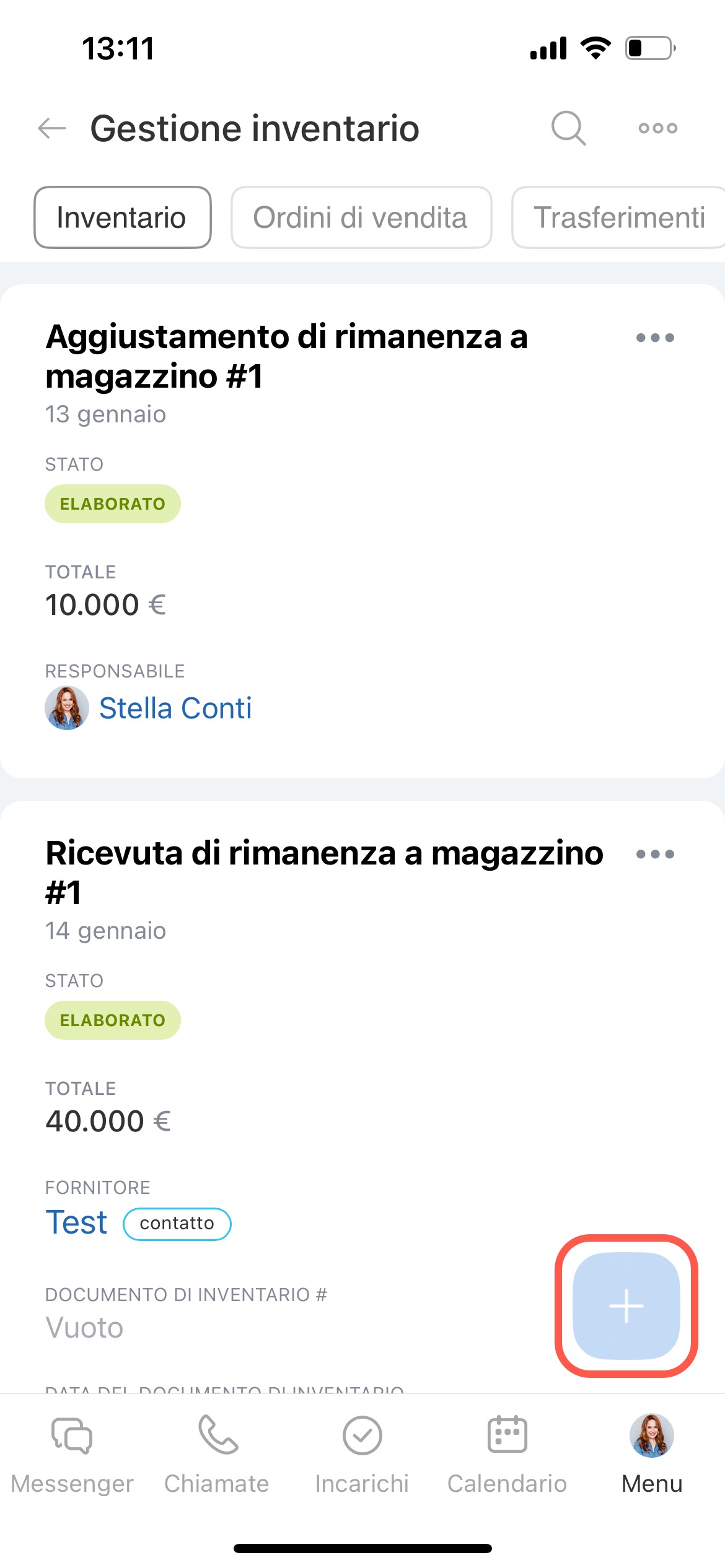 Per creare una nuova ricevuta di magazzino, tocca Più (+) e scegli Ricevuta di rimanenza a magazzino.