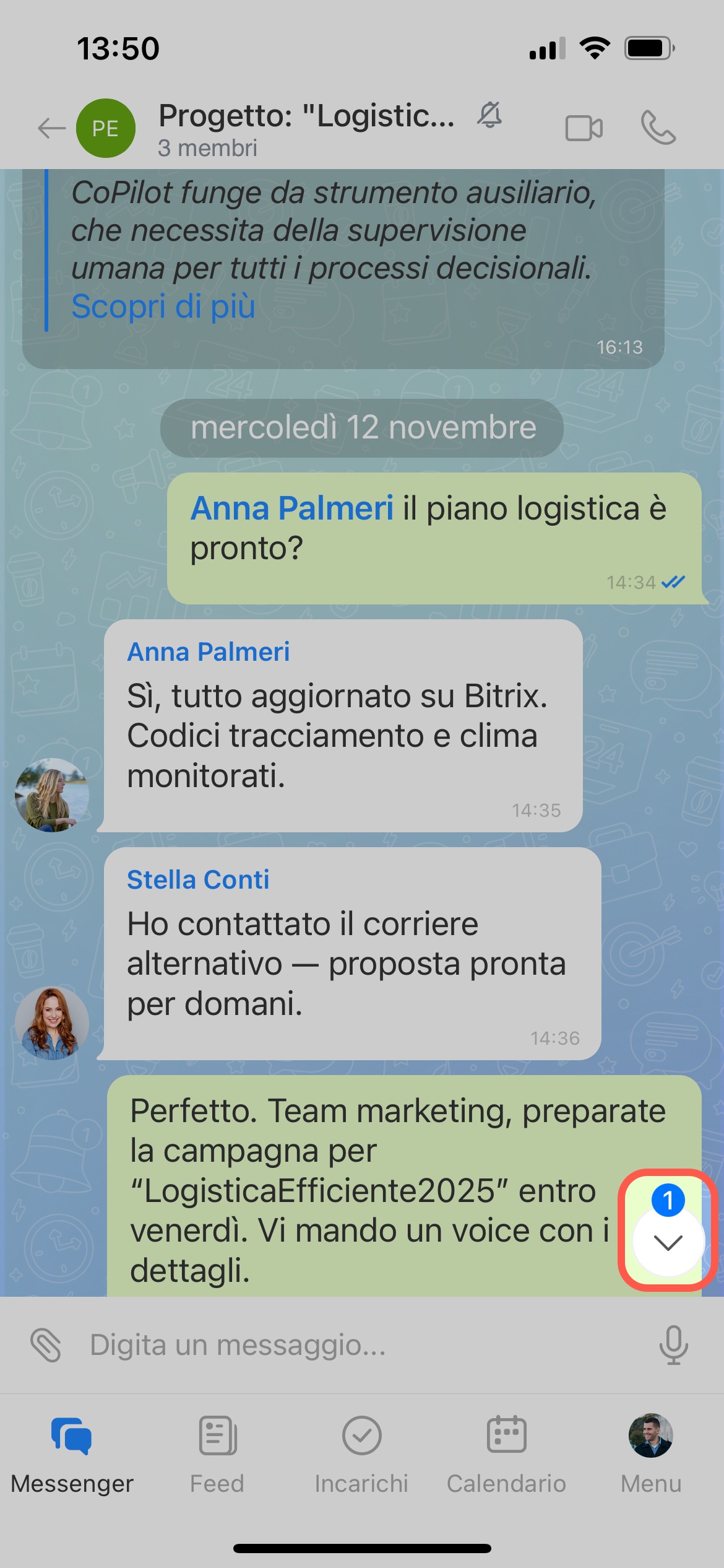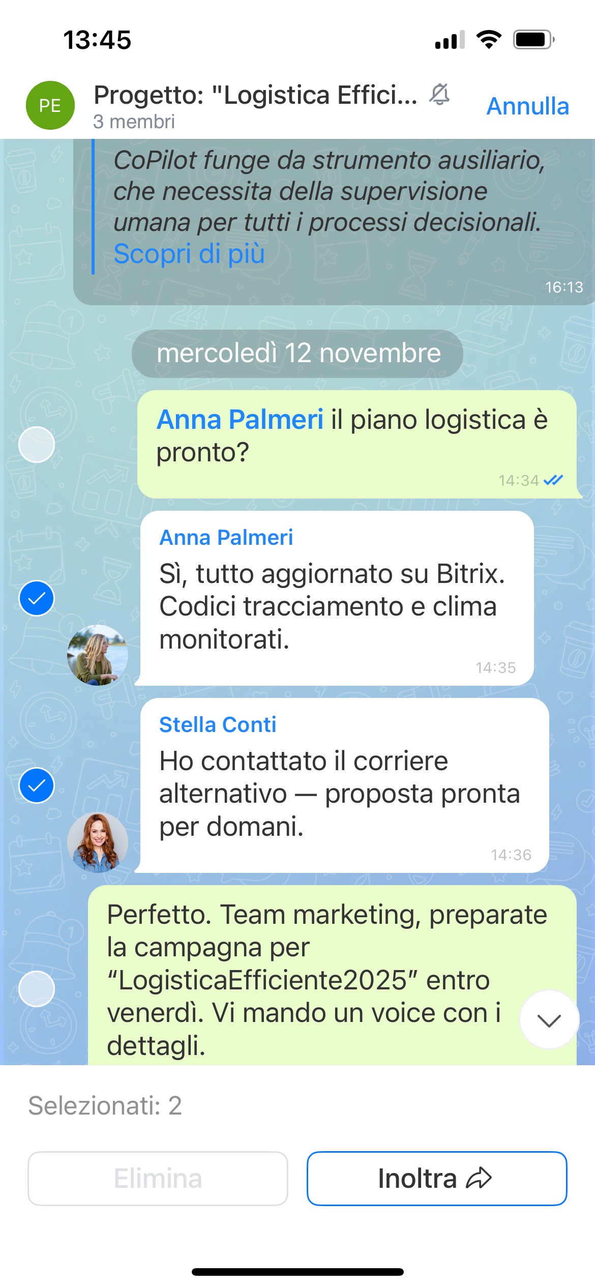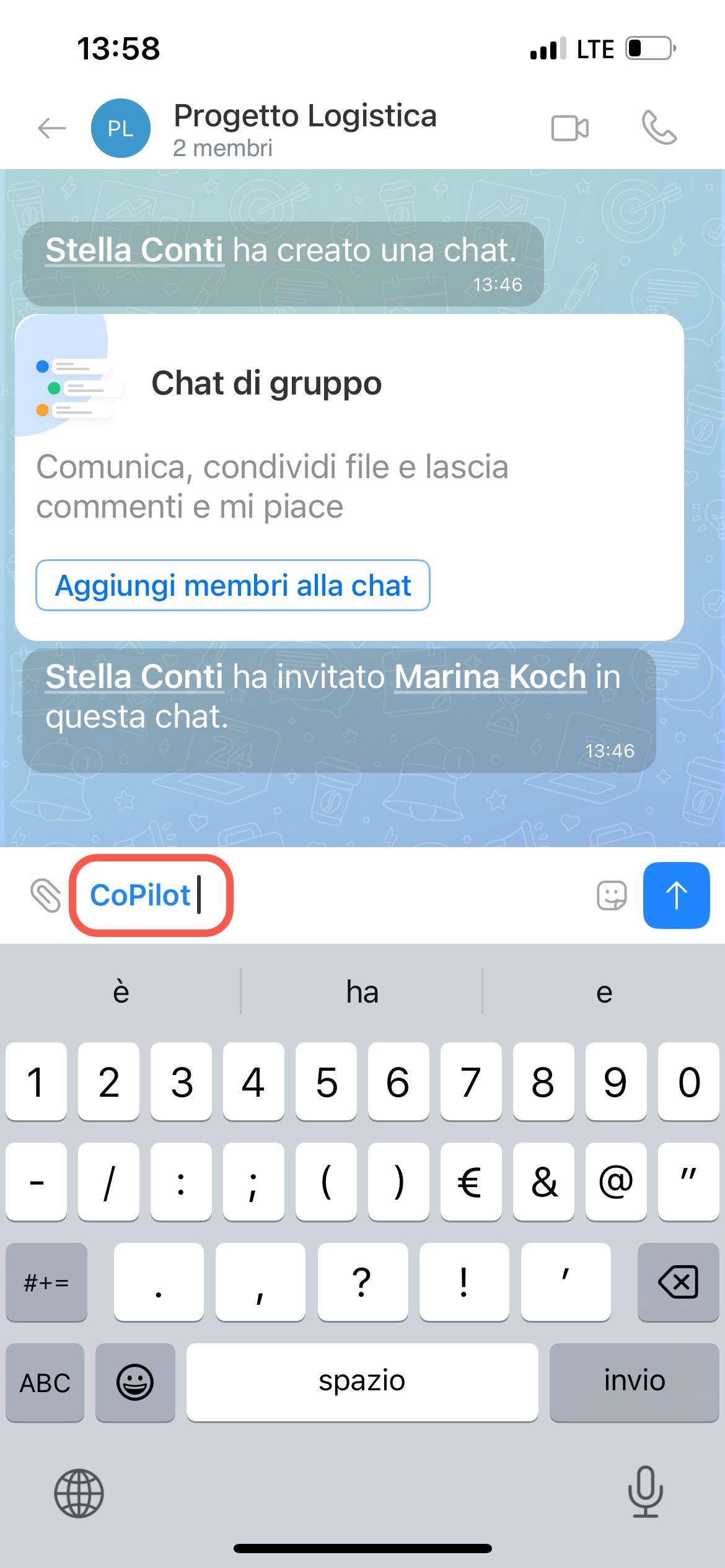 - Chiedi a CoPilot: seleziona il messaggio, poi digita la tua domanda — CoPilot risponderà direttamente nella chat.