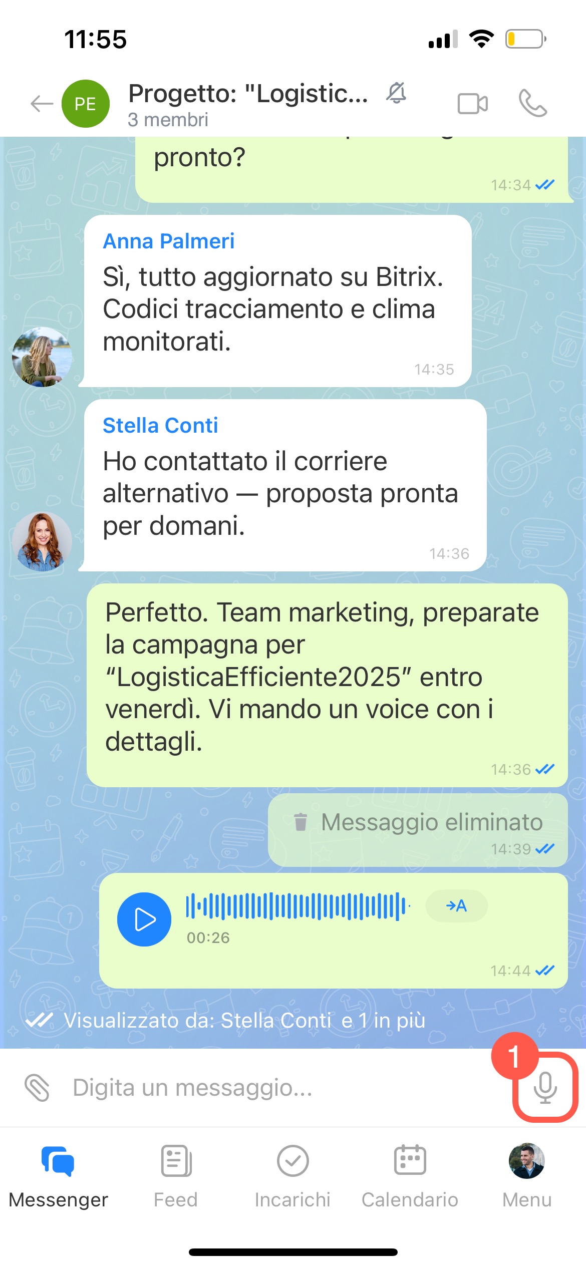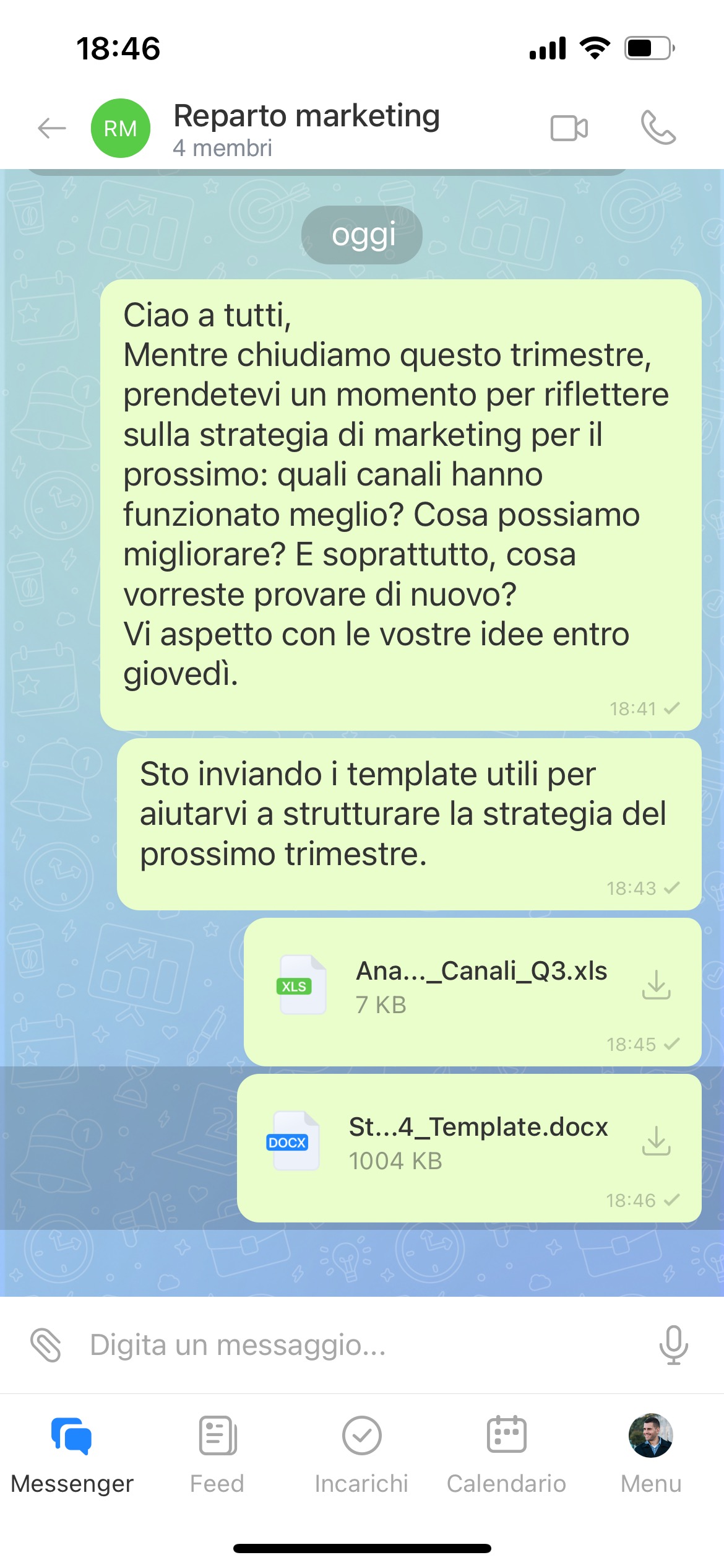 - creare un incarico o un evento nel calendario — nella chat apparirà un messaggio con il link all'elemento,