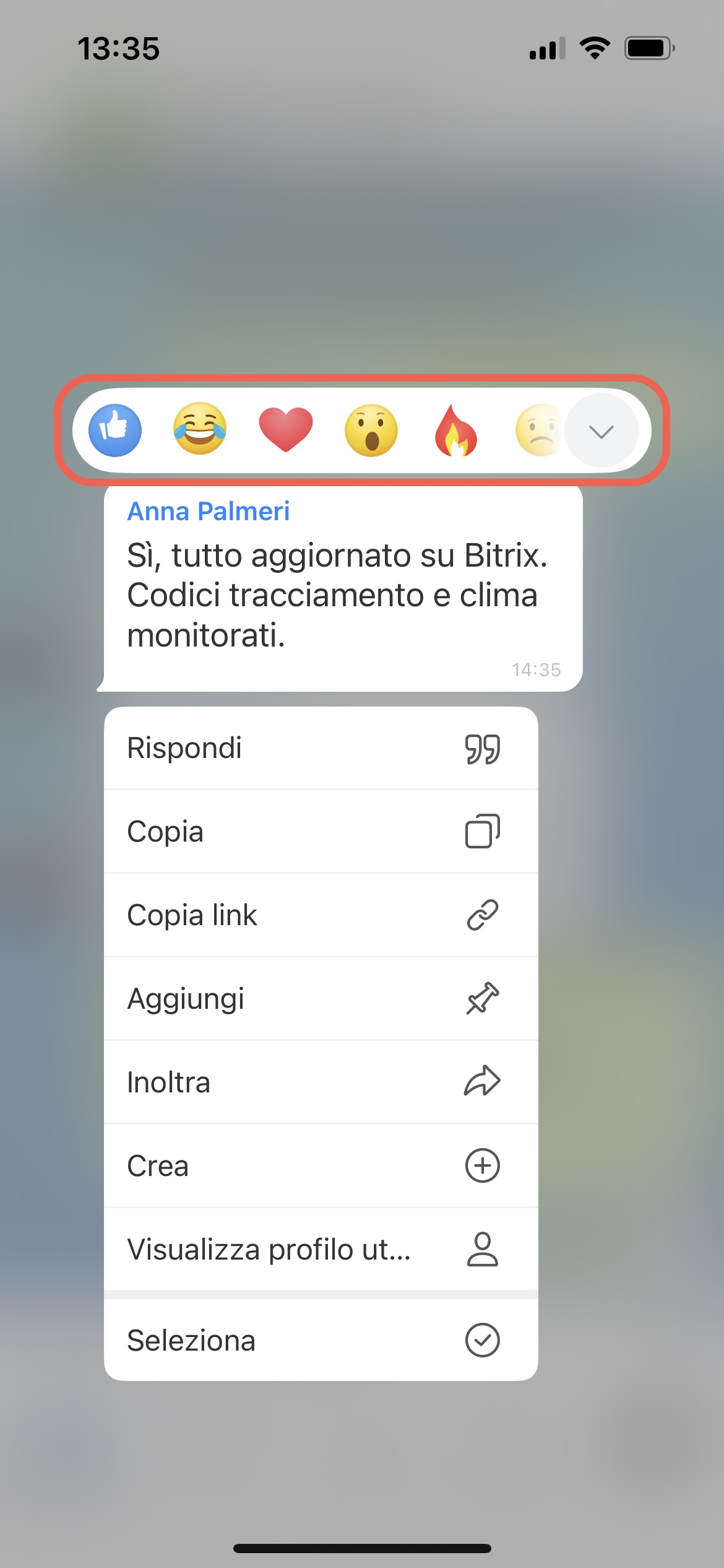 Questa funzione è disponibile per chat personali e di gruppo, canali e collaborazioni.