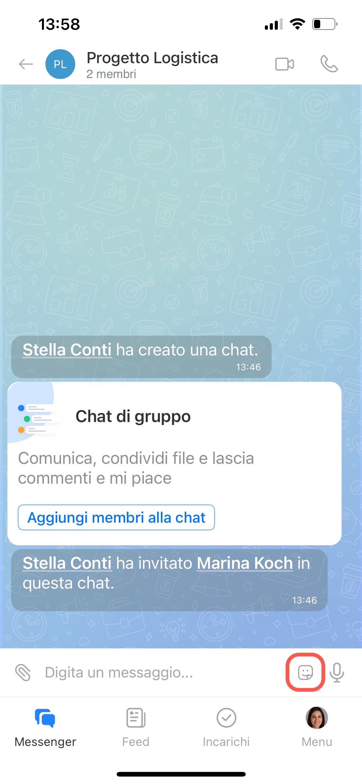 nel campo di inserimento del testo, seleziona e invia l'adesivo.