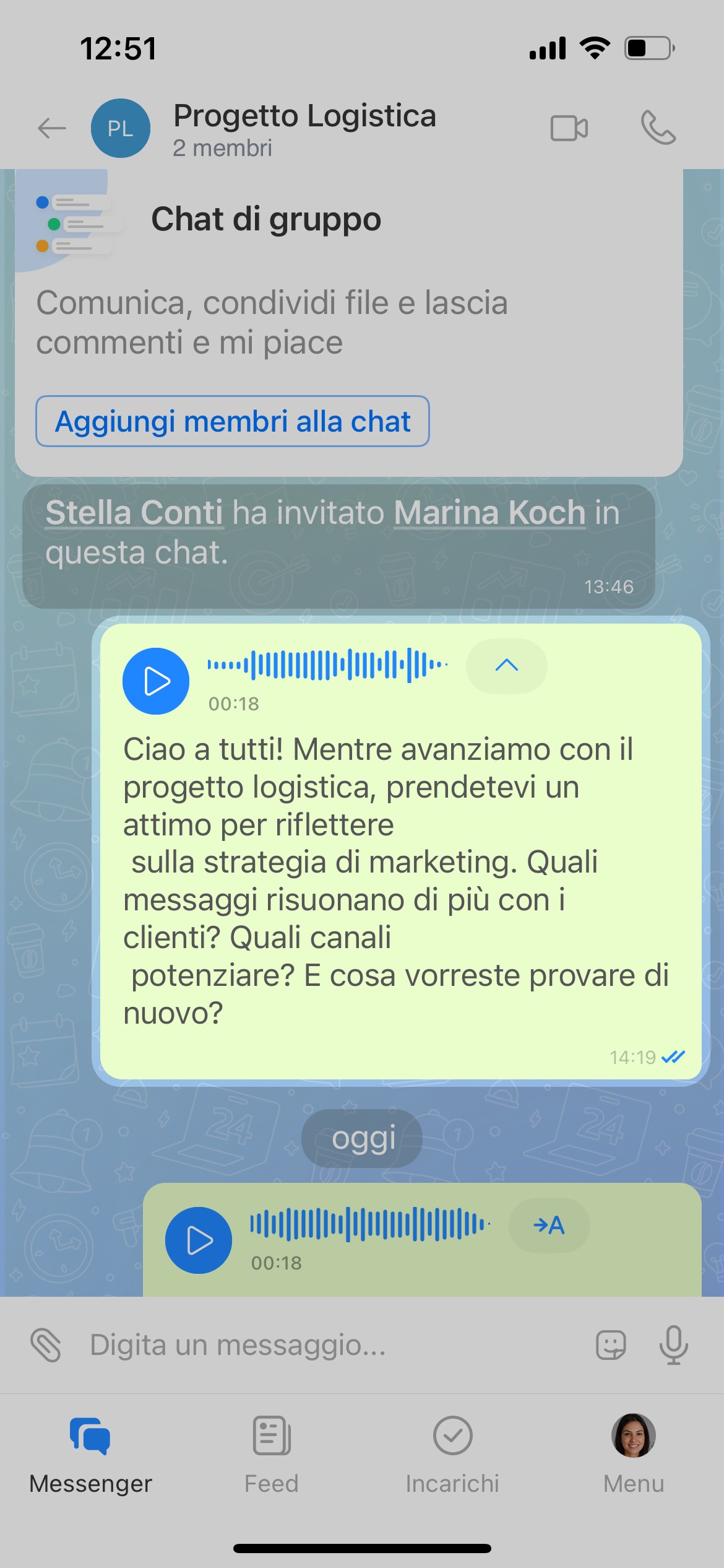 Trascrizione dei messaggi vocali. Se non è comodo ascoltare un messaggio, tocca sull'icona