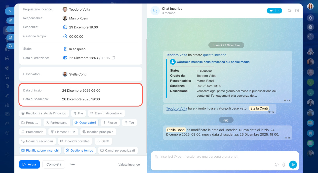 - In questa pagina vengono visualizzati solo gli incarichi con le date di inizio e di fine specificate.