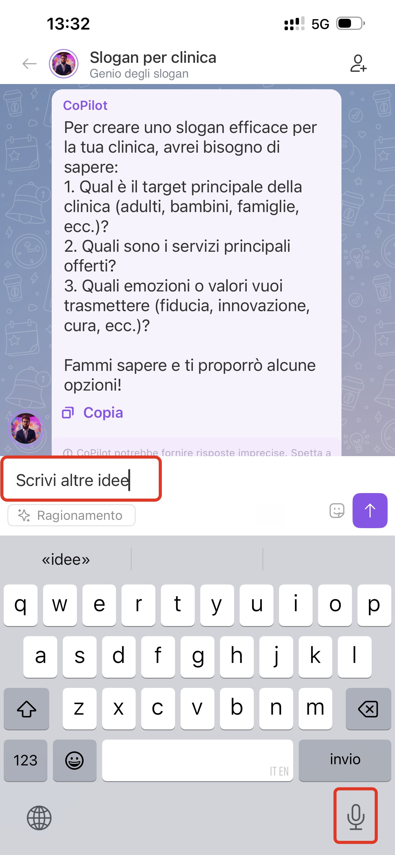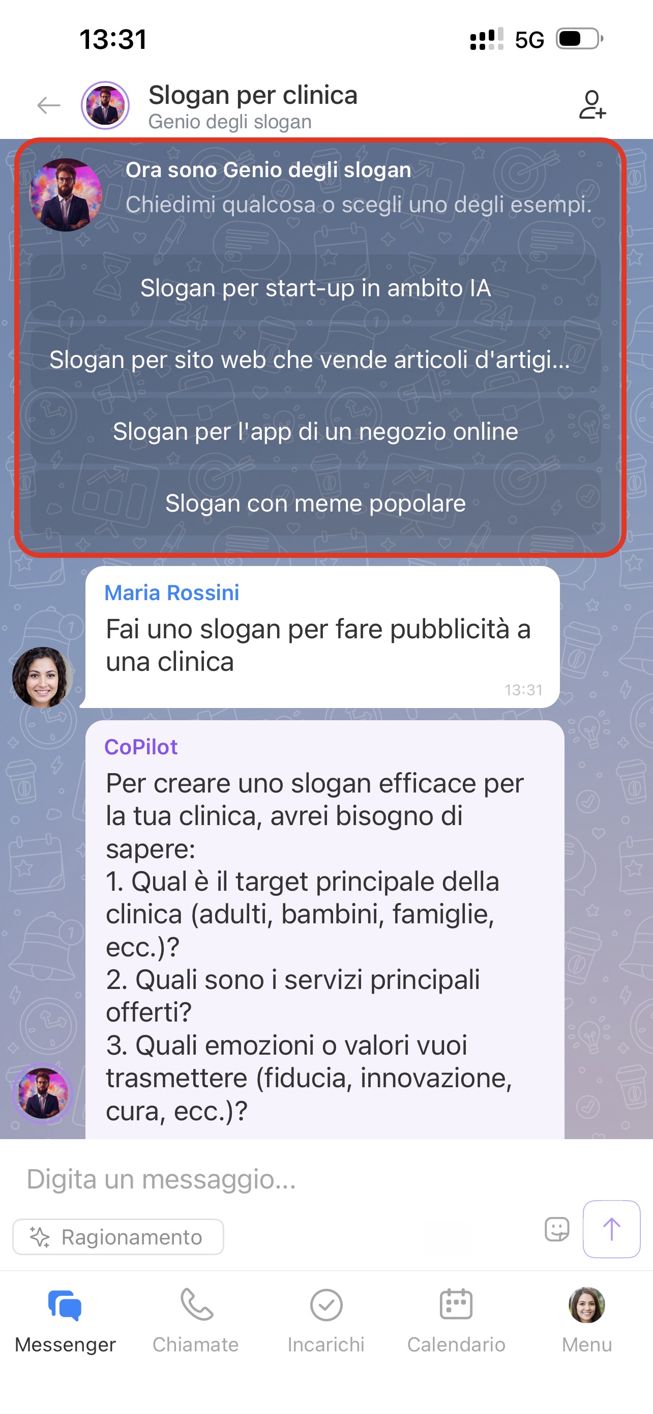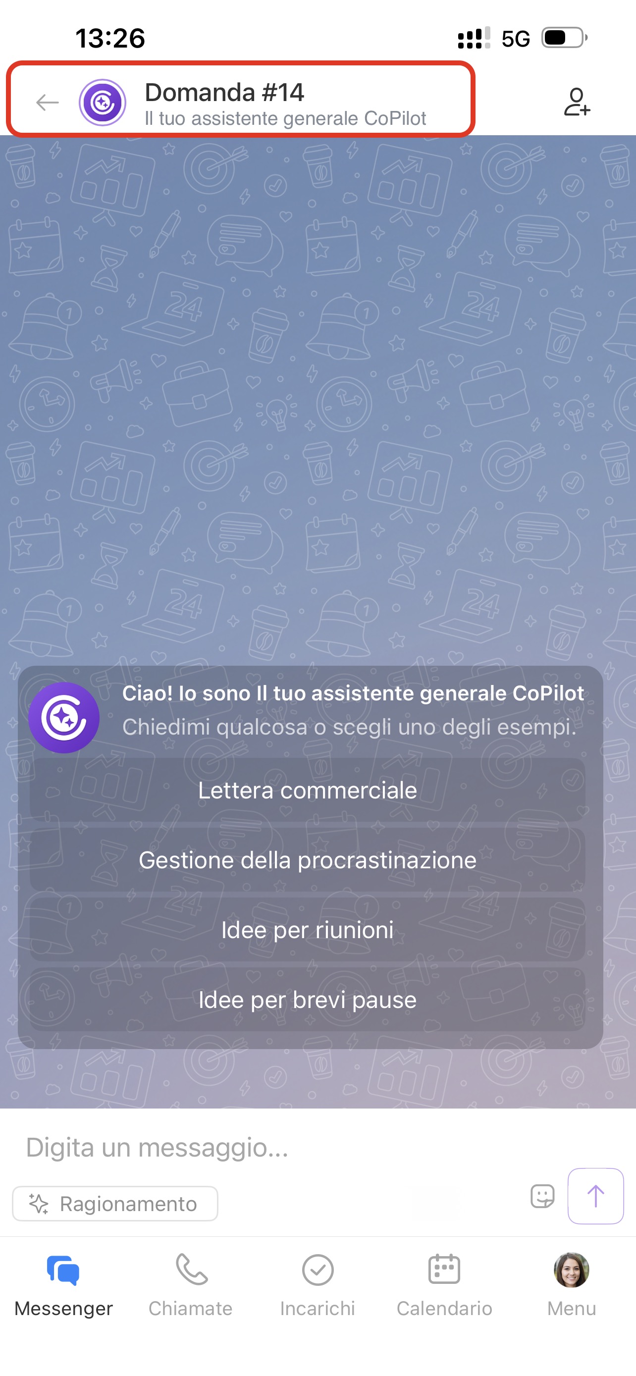Nell'ultimo aggiornamento abbiamo aggiunto nuove funzionalità per chattare con CoPilot: