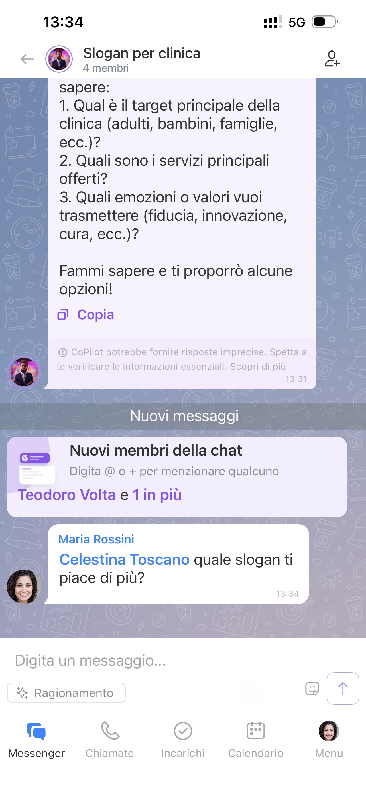 - comunica con CoPilot nelle chat, nelle collab o nei commenti ai post nel canale.