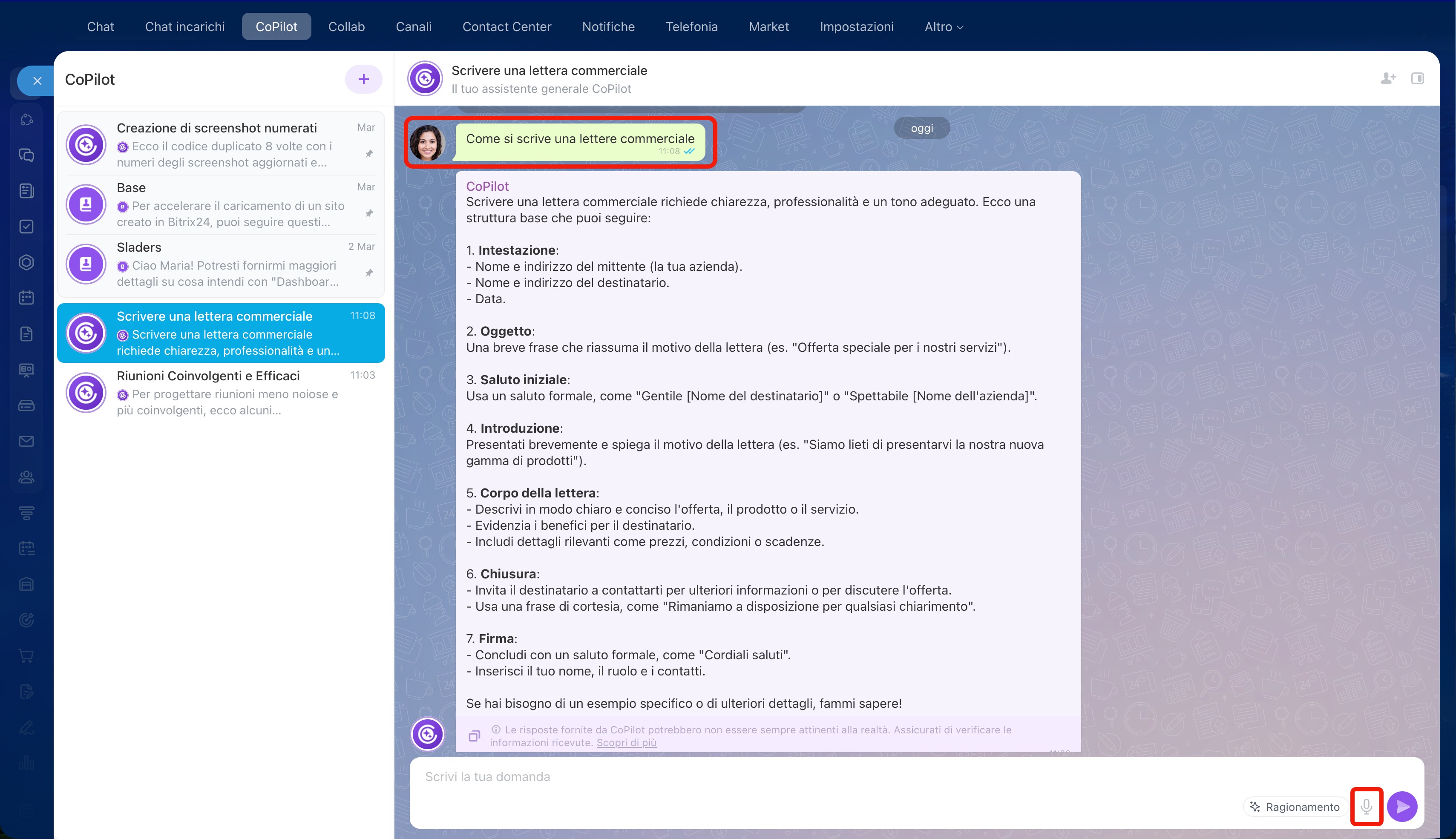 - comunica con CoPilot nell'app mobile di Bitrix24,