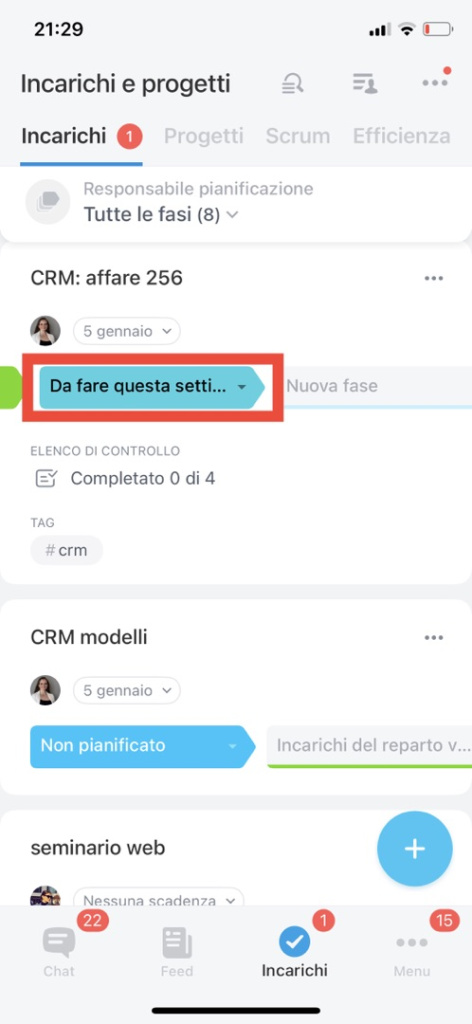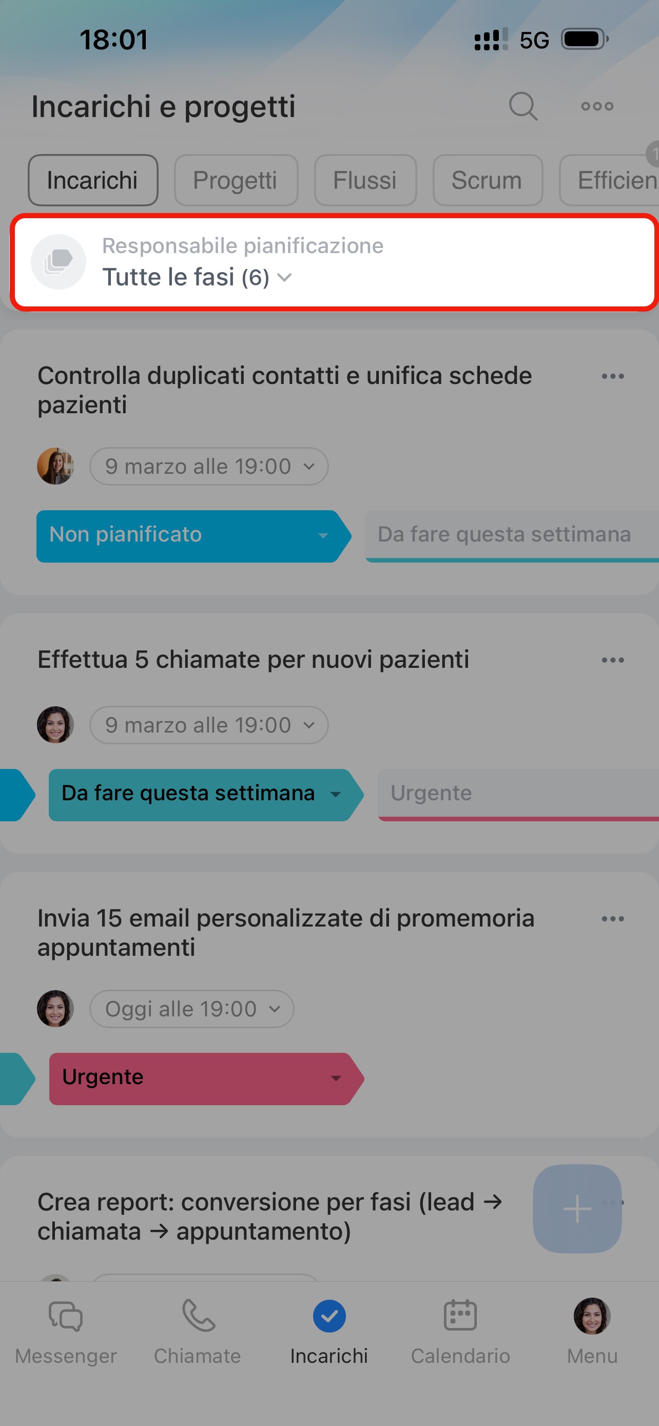 Ora puoi distribuire gli incarichi creati in precedenza nelle nuove fasi.