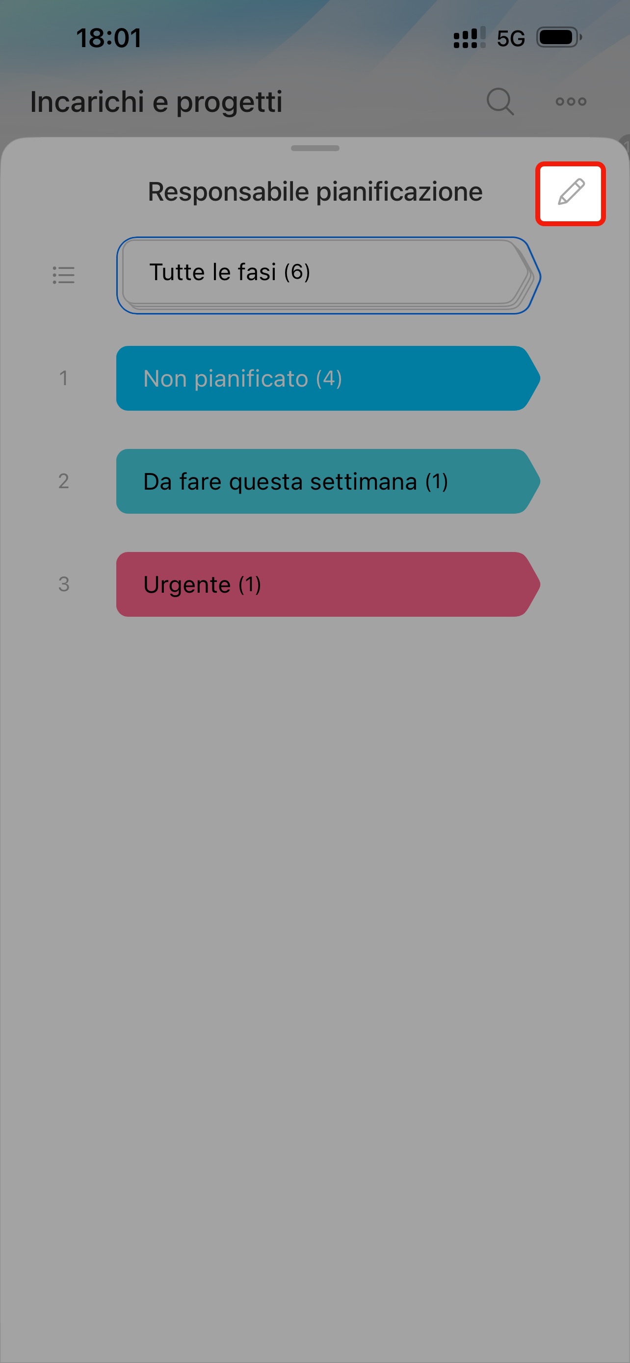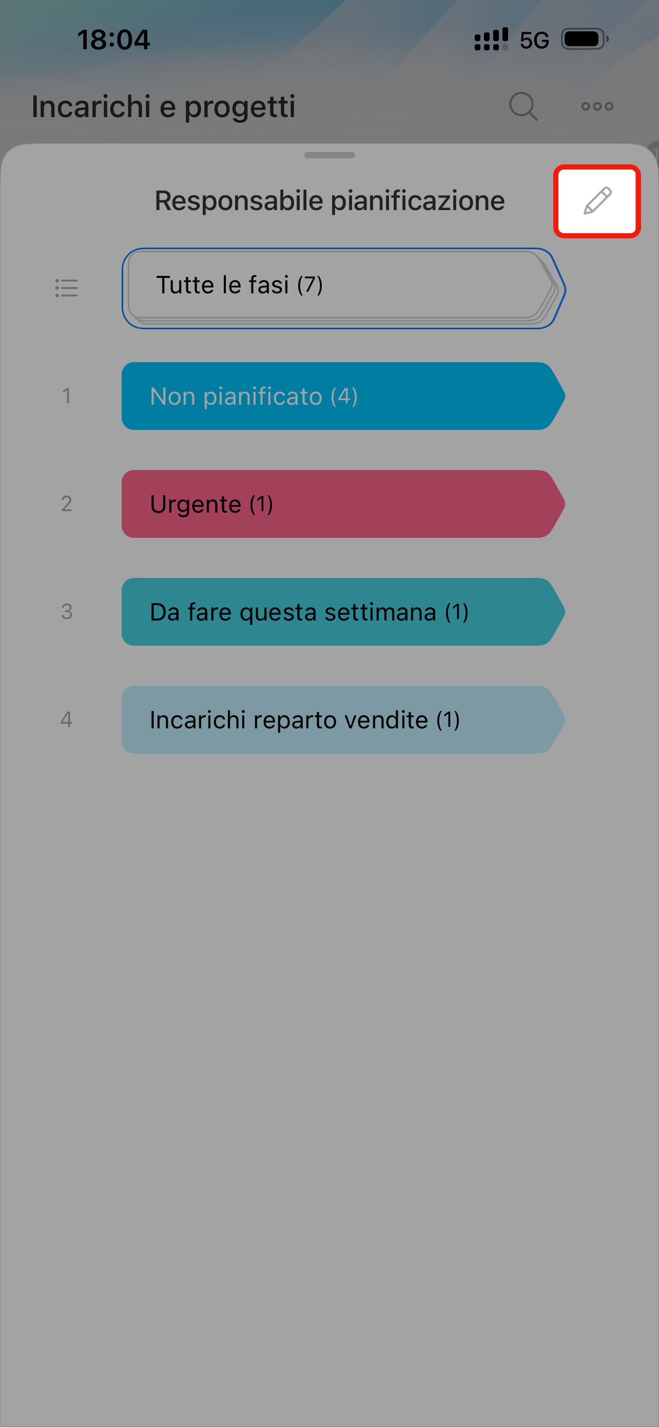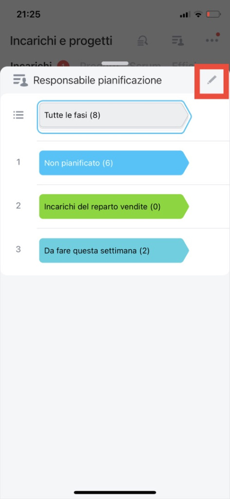 Apri Tutte le fasi > Modifica (✏️). Fai clic su Modifica (✏️) a destra della fase selezionata.