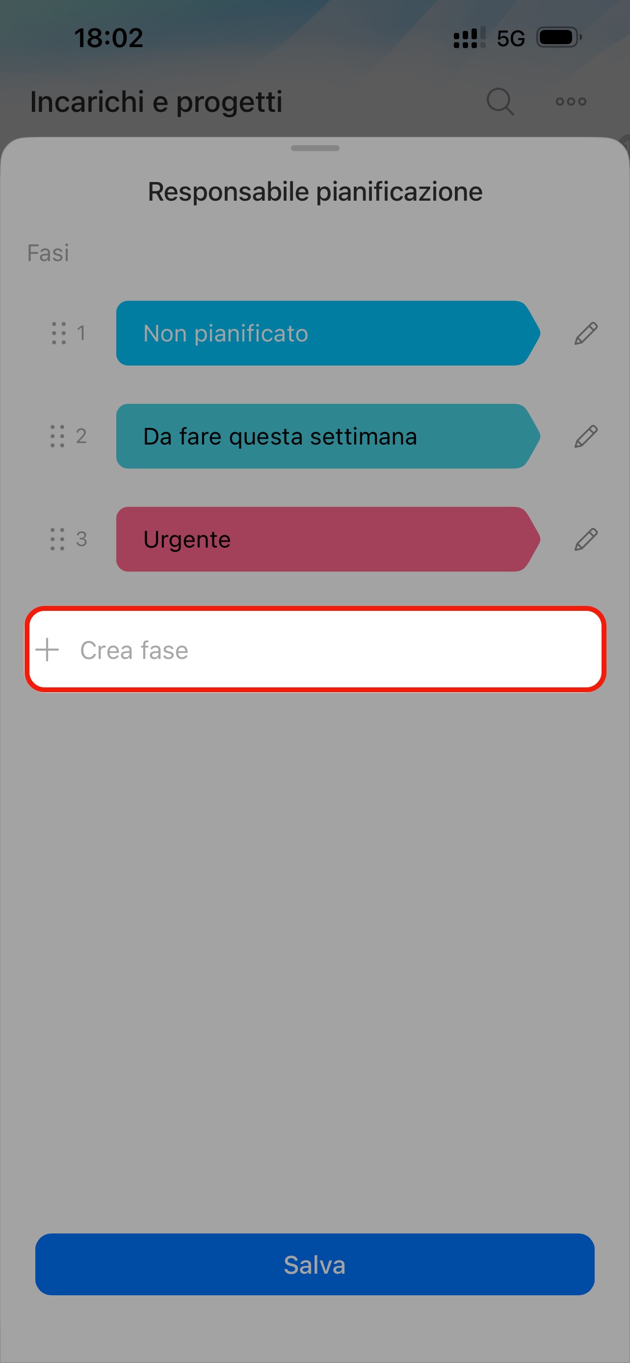 Apporta le modifiche necessarie o elimina la fase. Fai clic su Salva.