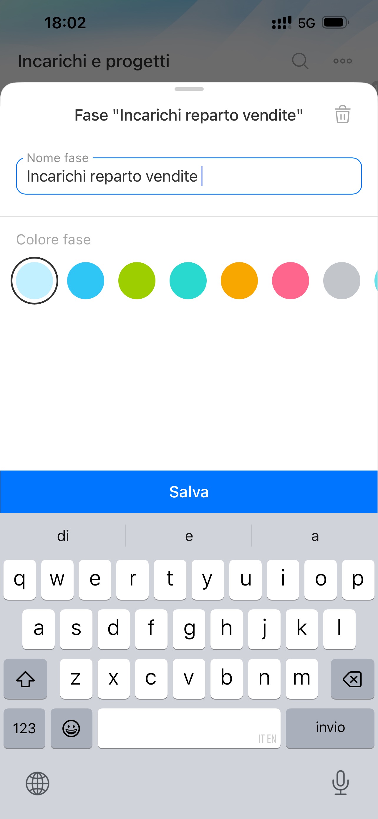 Dopo la creazione, l'incarico si troverà nella prima fase, ma puoi spostarlo in un'altra.
