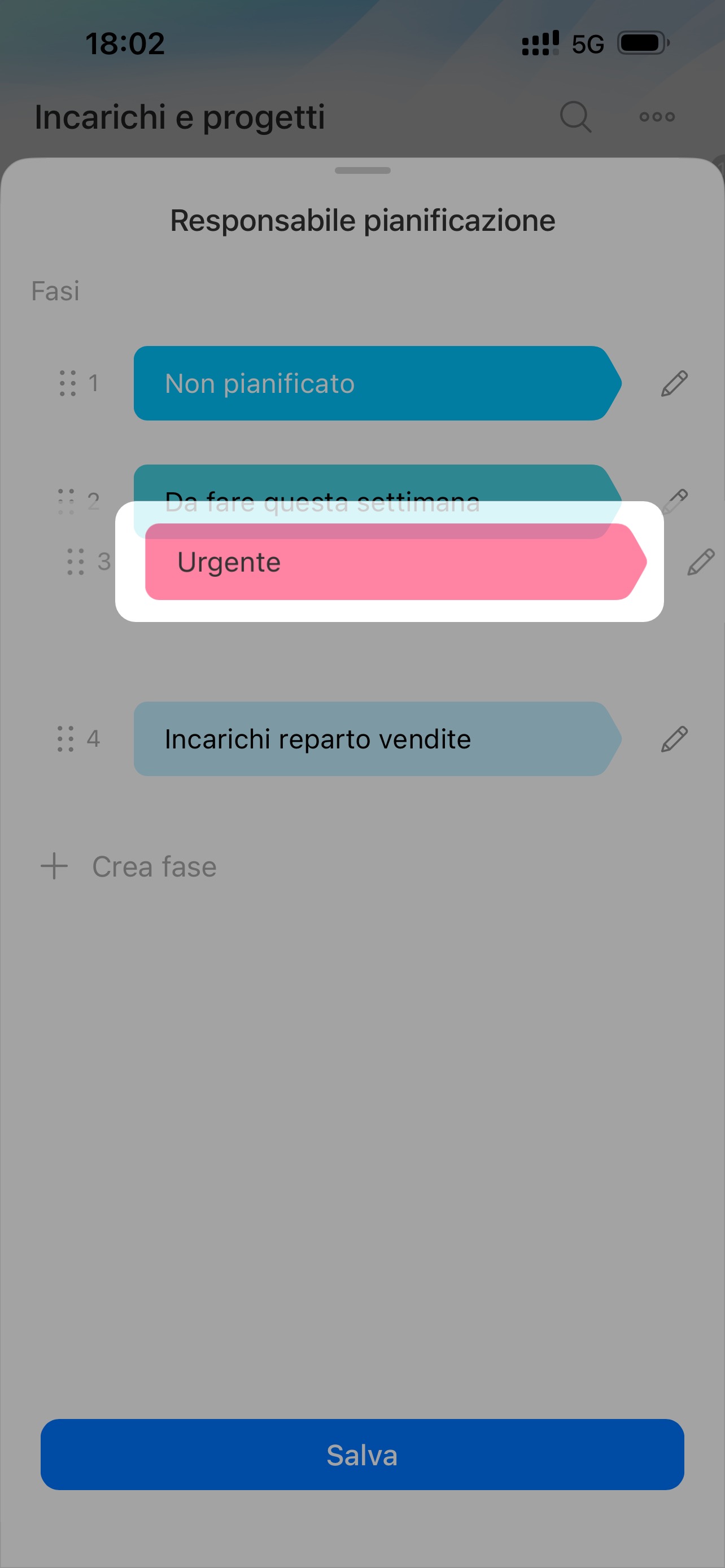 Per modificare l'ordine delle fasi, trascina e rilascia la fase nella posizione richiesta.