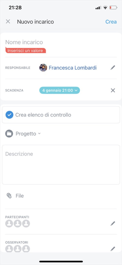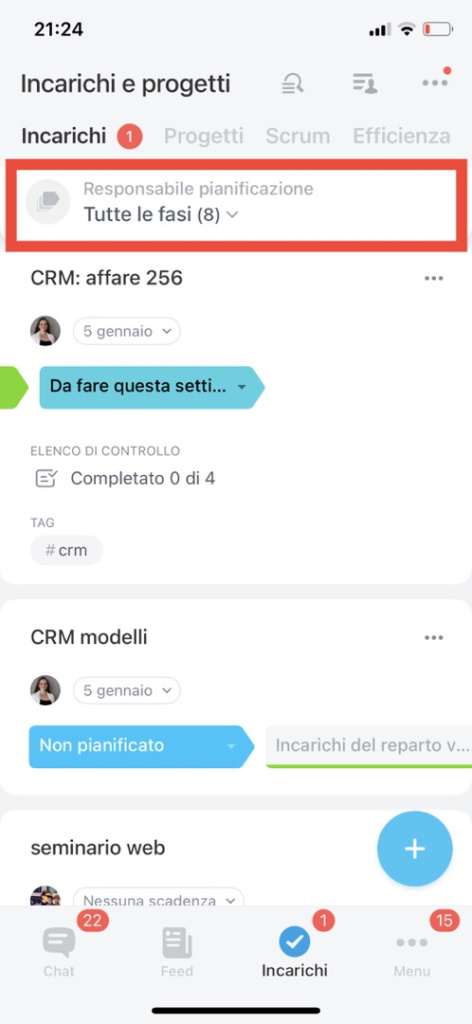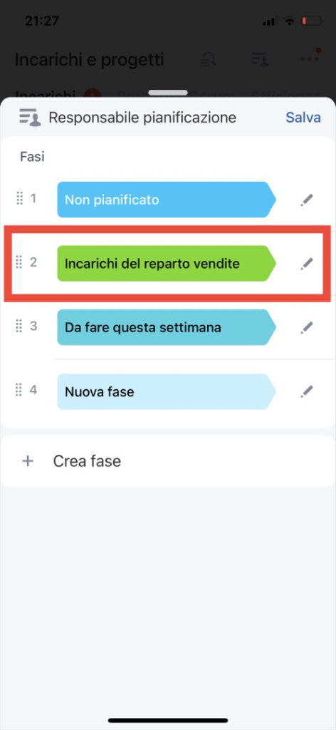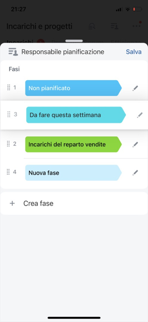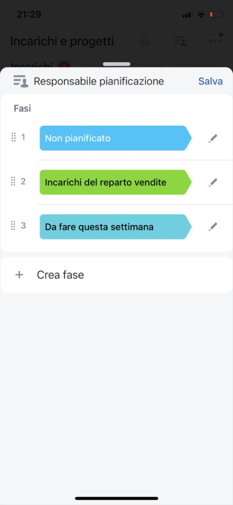 Il responsabile pianificazione degli incarichi è costituito da fasi che crei tu stesso in base al tuo processo di lavoro.