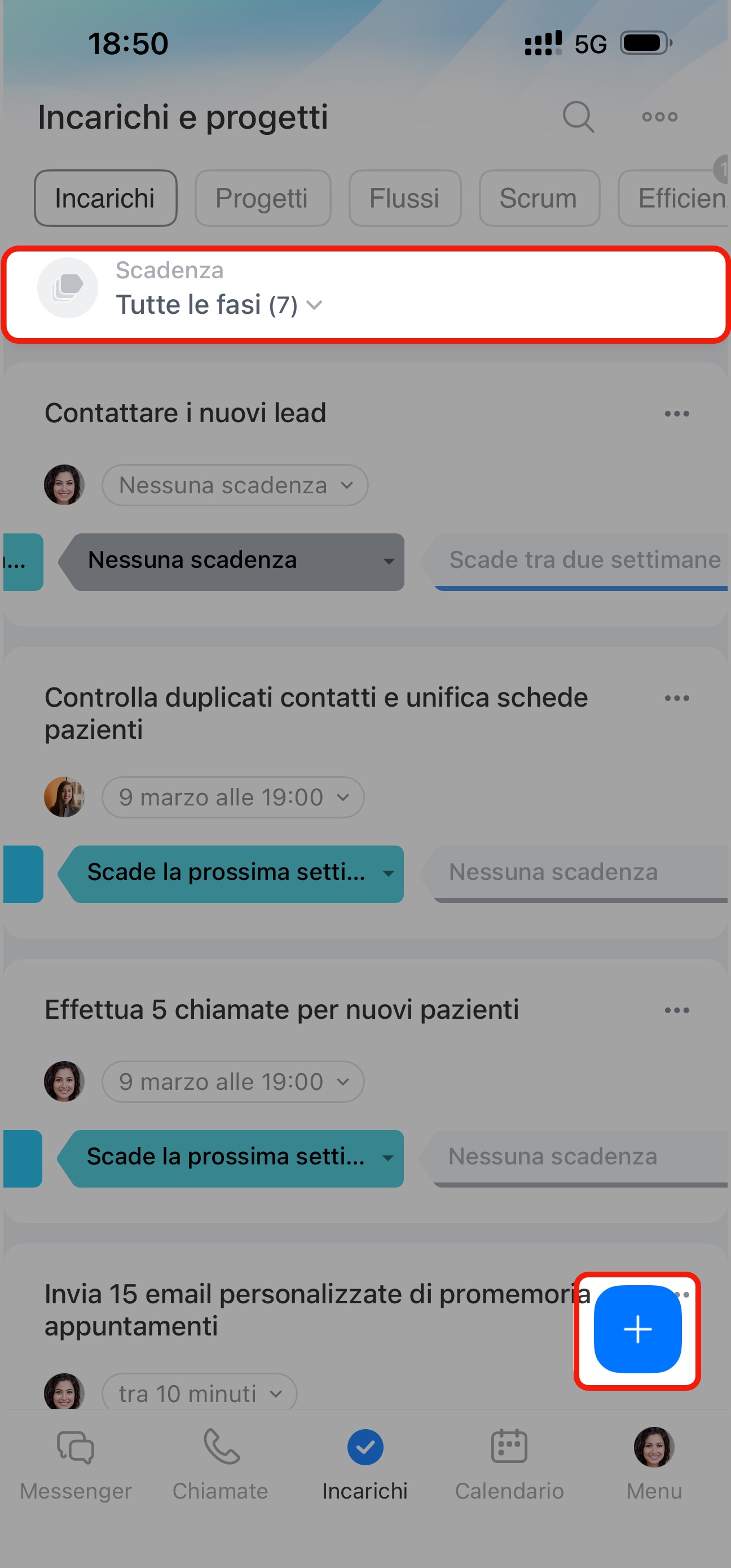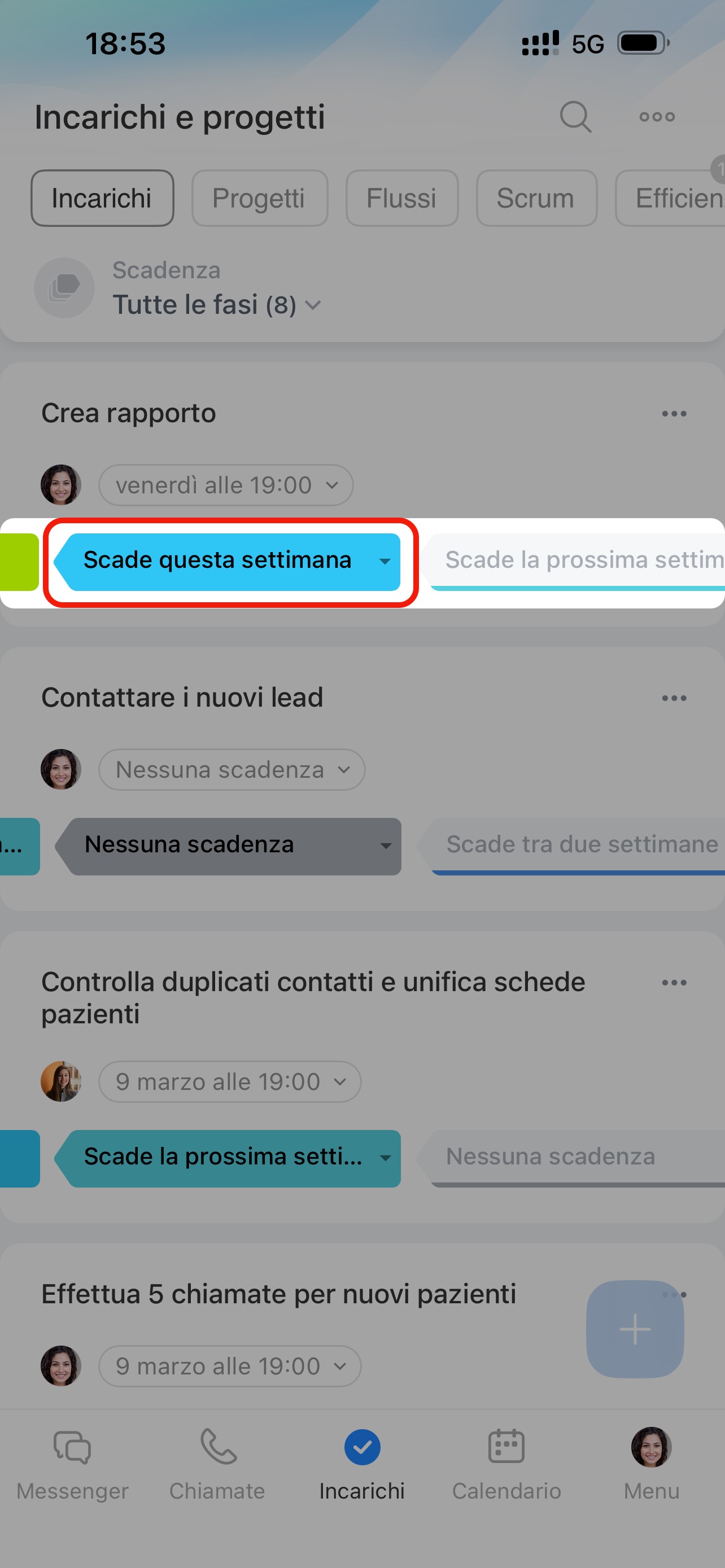 Modifica la scadenza e l'incarico si sposterà automaticamente alla fase corrispondente.