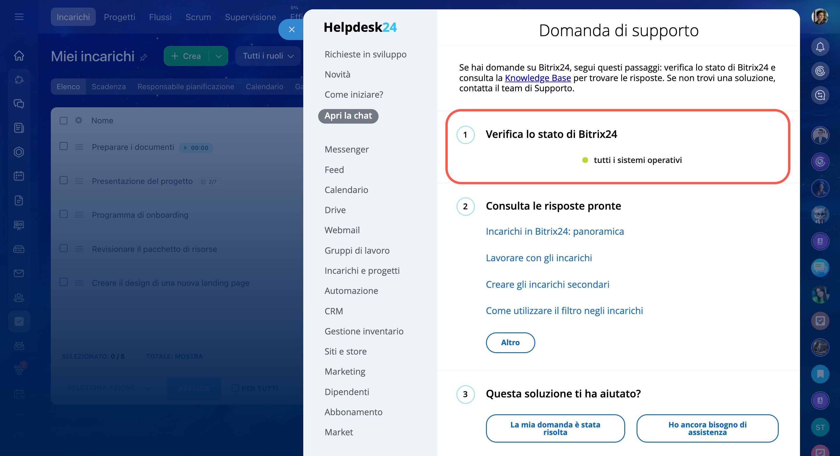 Negli articoli del helpdesk di Bitrix24 troverai risposte a molte domande sulle funzionalità e sulle impostazioni degli strumenti.