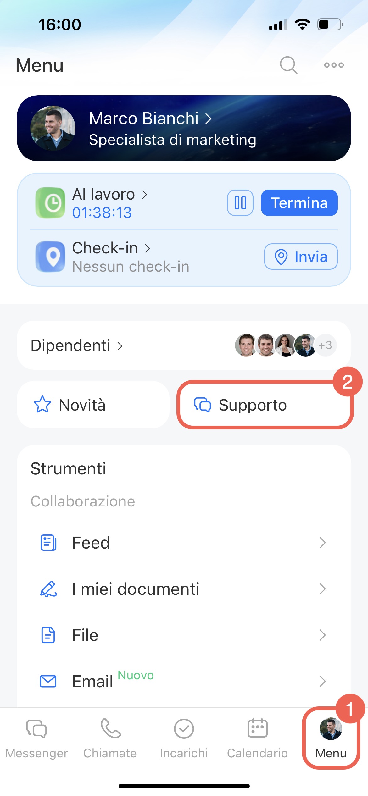 Solo gli amministratori dell'account e i partner di Bitrix24 possono contattare la chat di supporto. È possibile accedere alla chat sia dall'applicazione desktop che da quella mobile di Bitrix24.