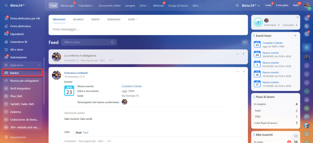 Nel menu principale di Bitrix24, apri Applicazioni > Market.