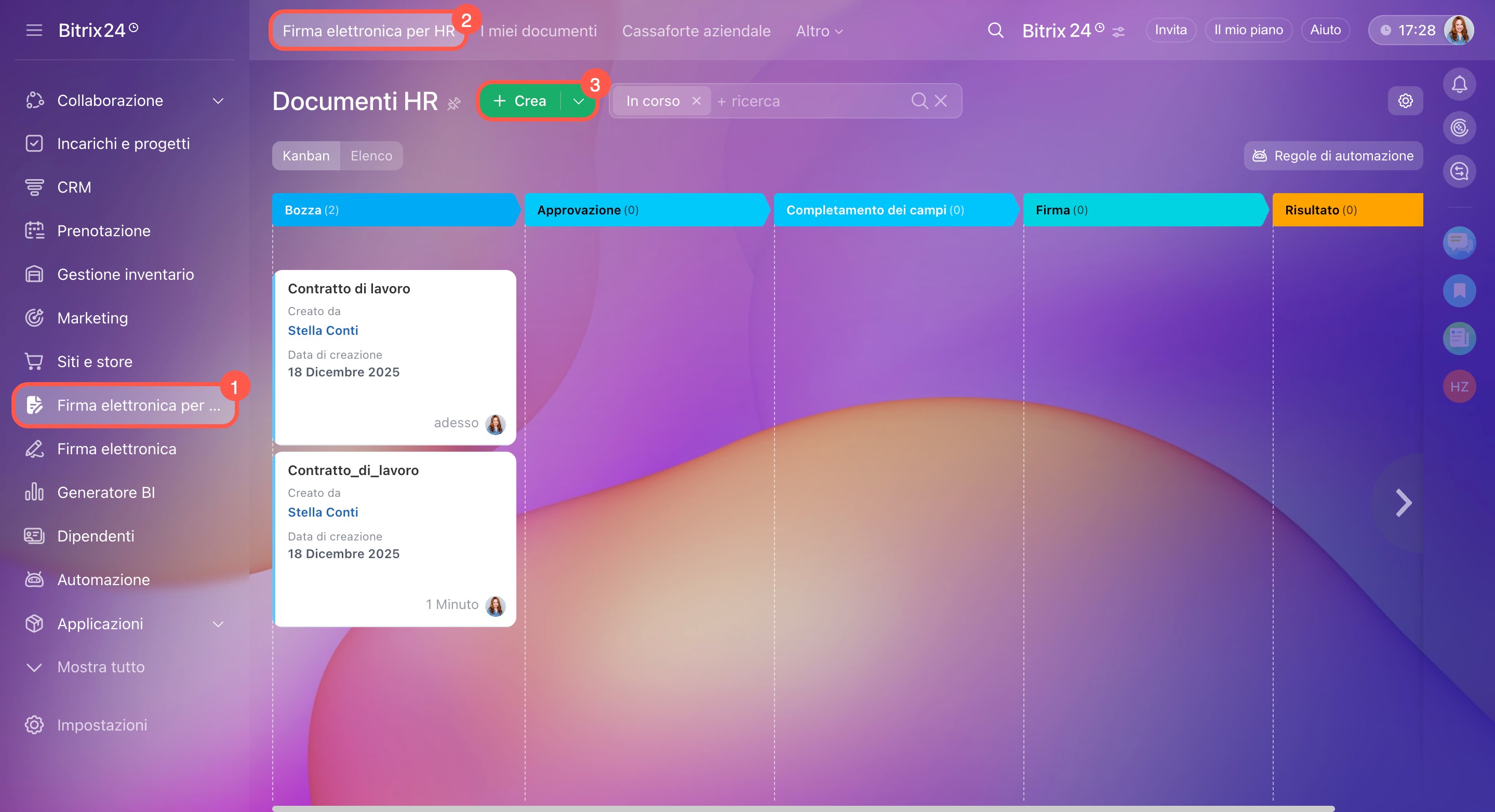 - il dipendente che ha avviato la firma o qualsiasi persona con accesso alla firma elettronica di Bitrix24.