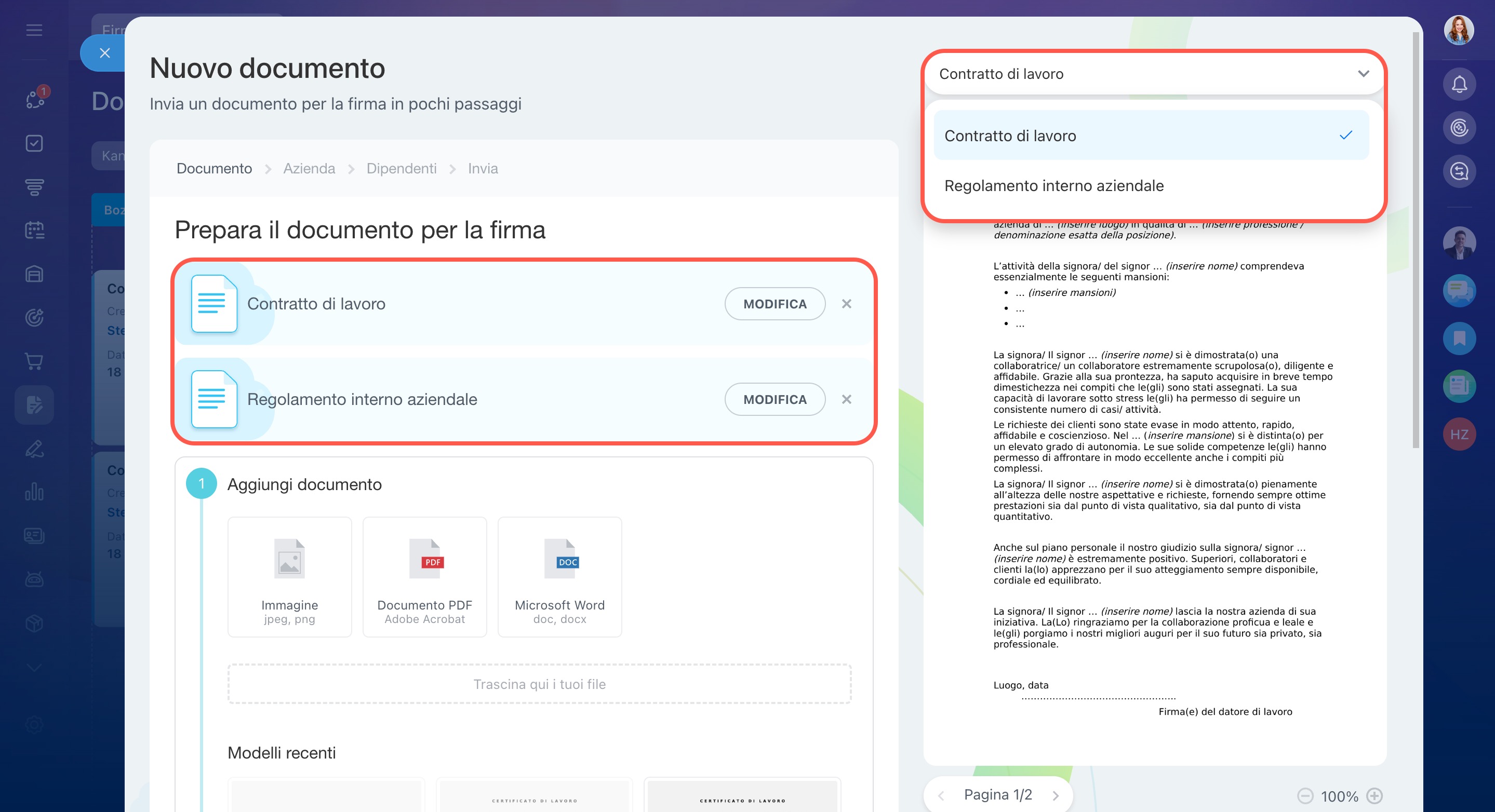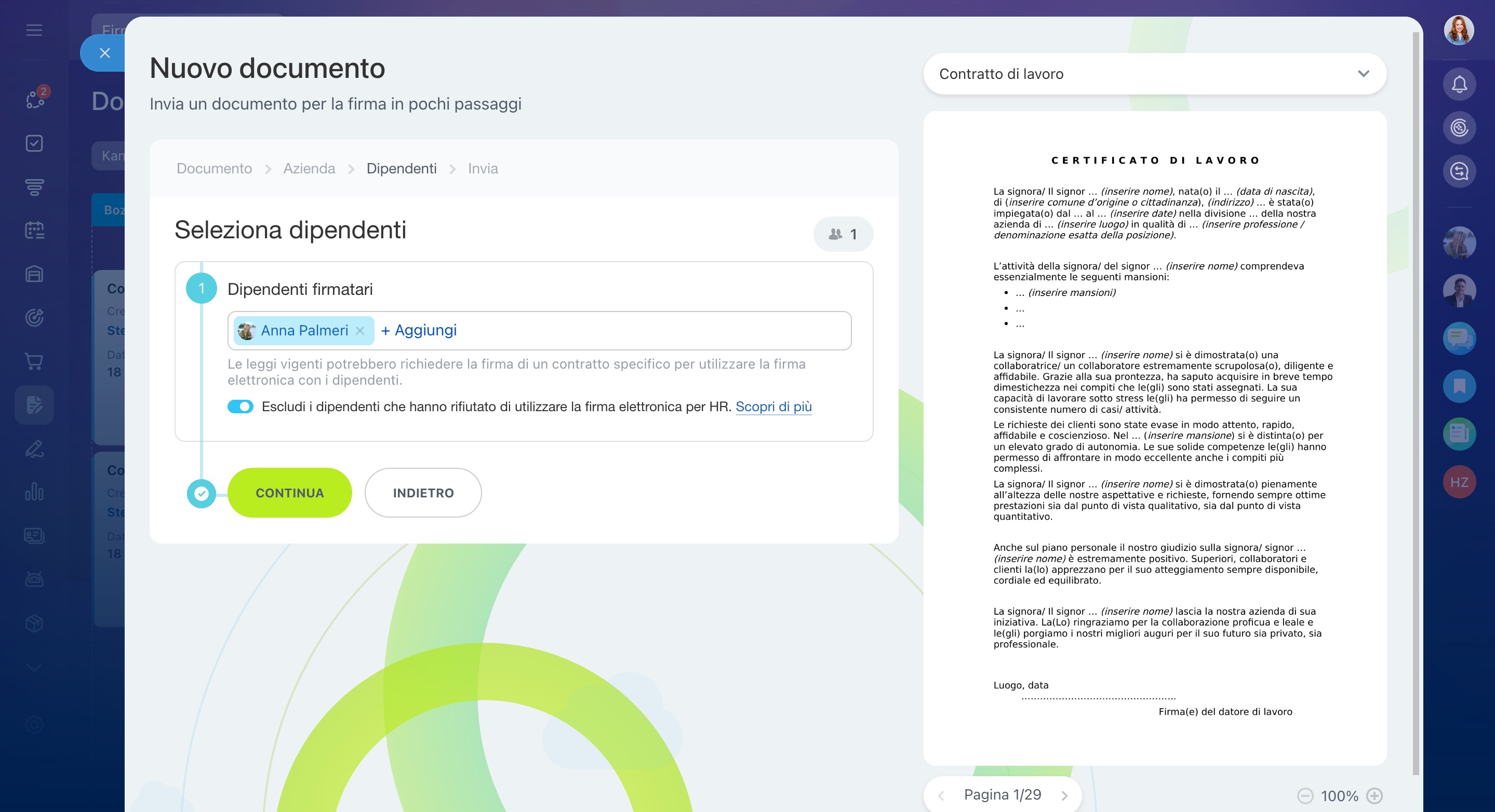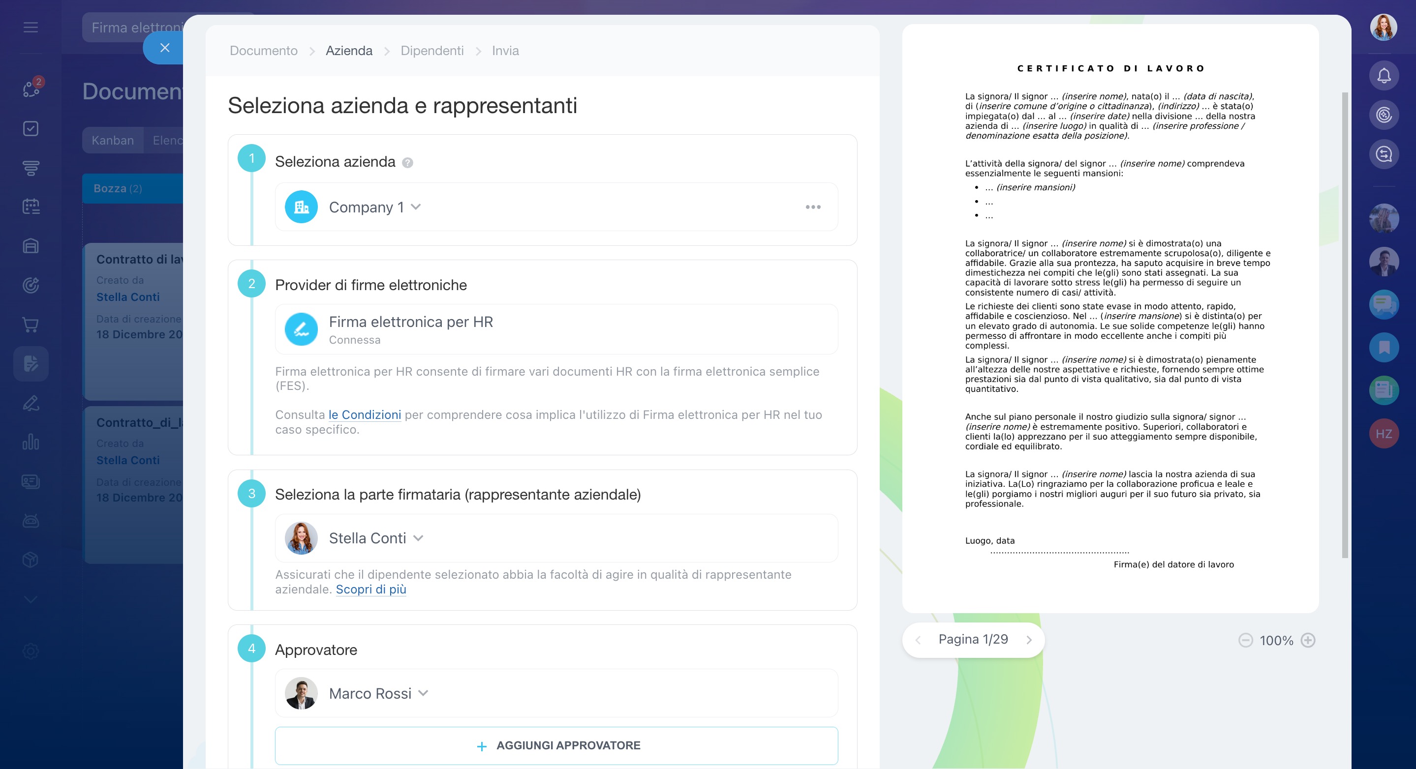 Seleziona azienda: scegli l’azienda che firmerà il documento con il dipendente.