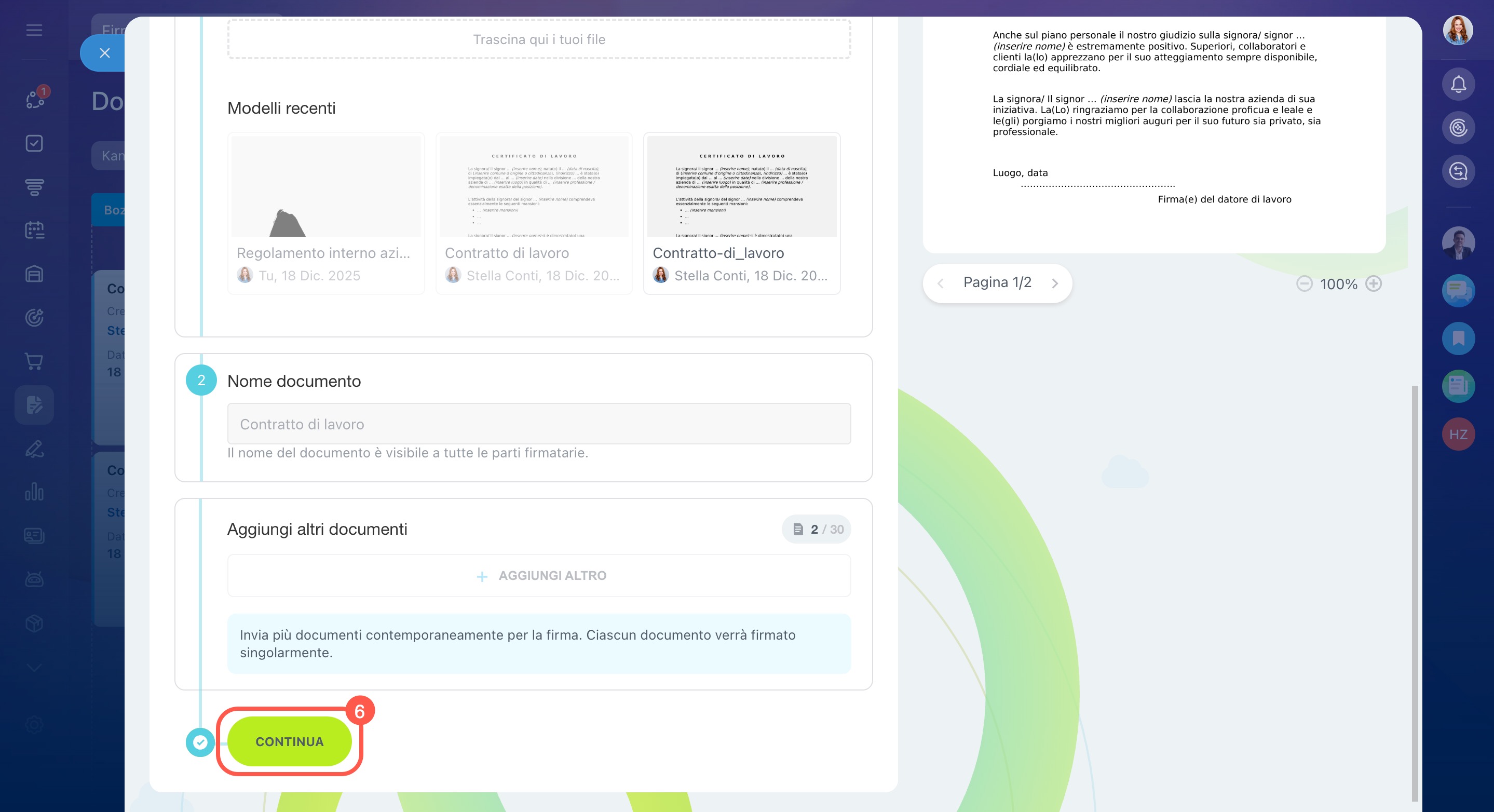 Per creare e inviare un documento per la firma, segui questi passaggi: