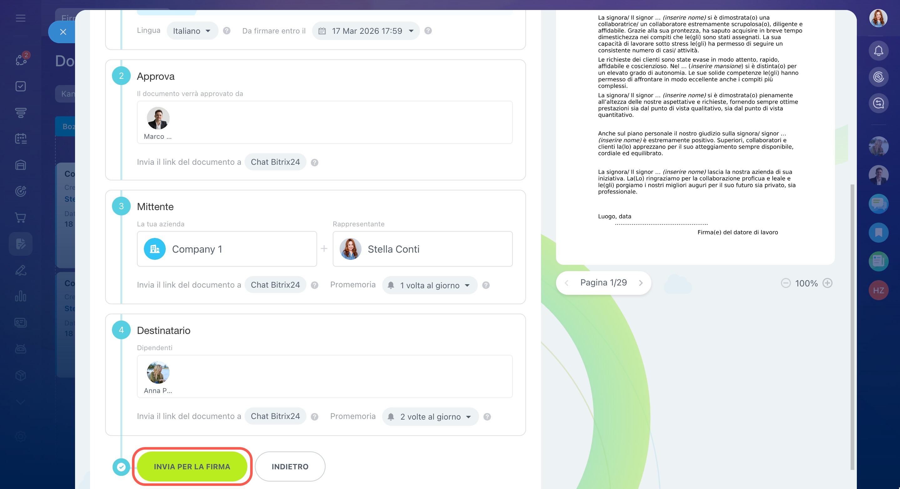 - Se un documento viene inviato a più dipendenti, ognuno riceverà una copia univoca da firmare.