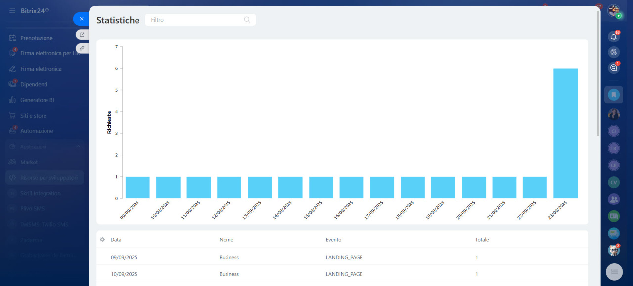 Le statistiche possono mostrare un aumento delle richieste, a causa del quale il lavoro di Bitrix24 è diventato più lento