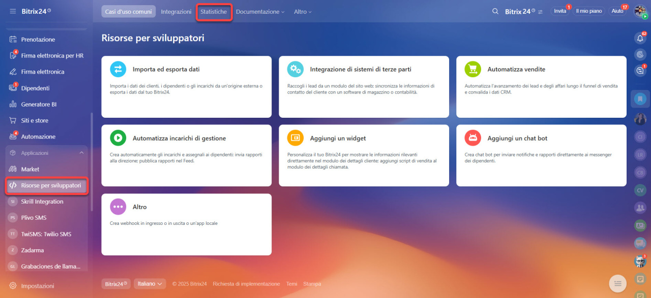 Vai nella sezione Applicazioni > Risorse per sviluppatori > Apri la scheda Statistiche.