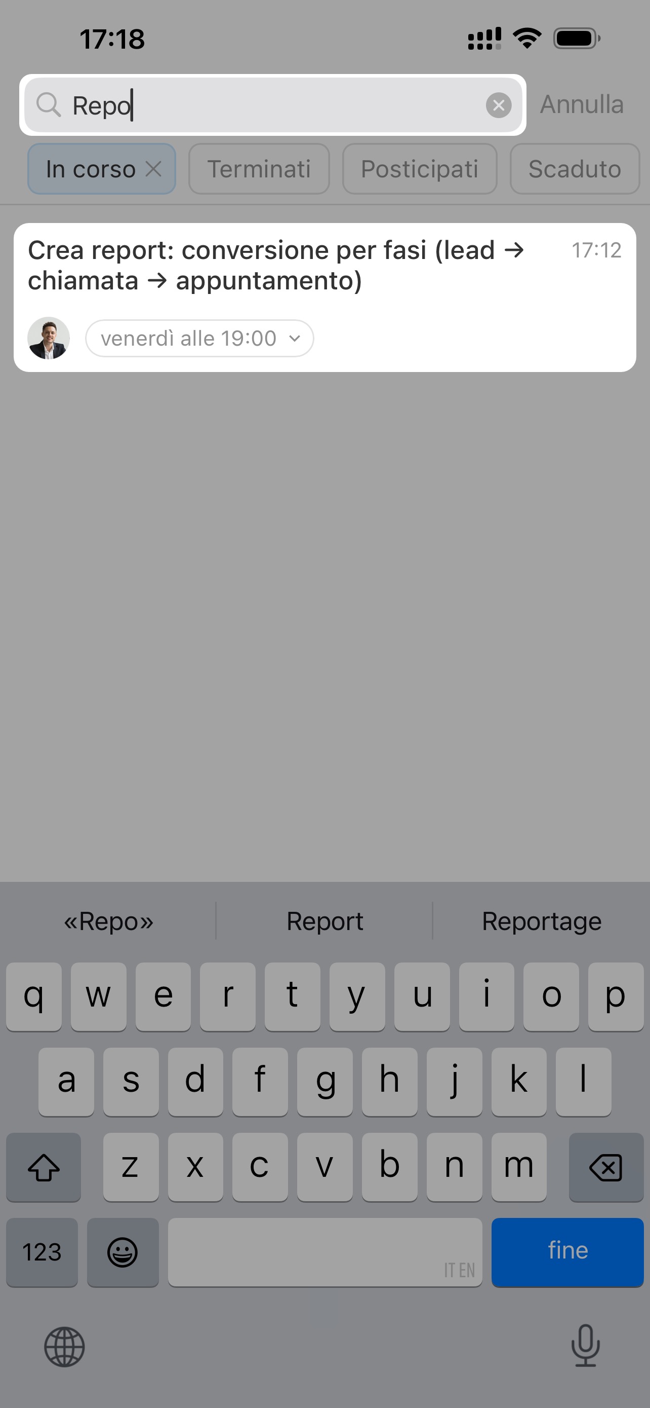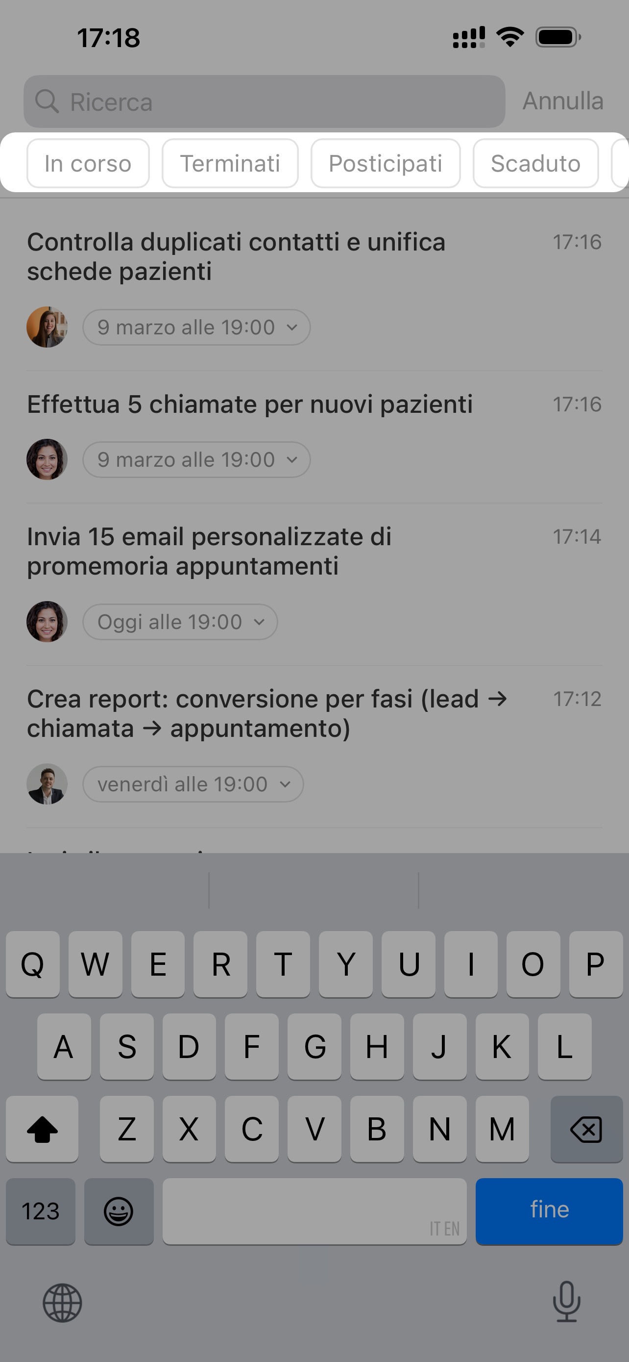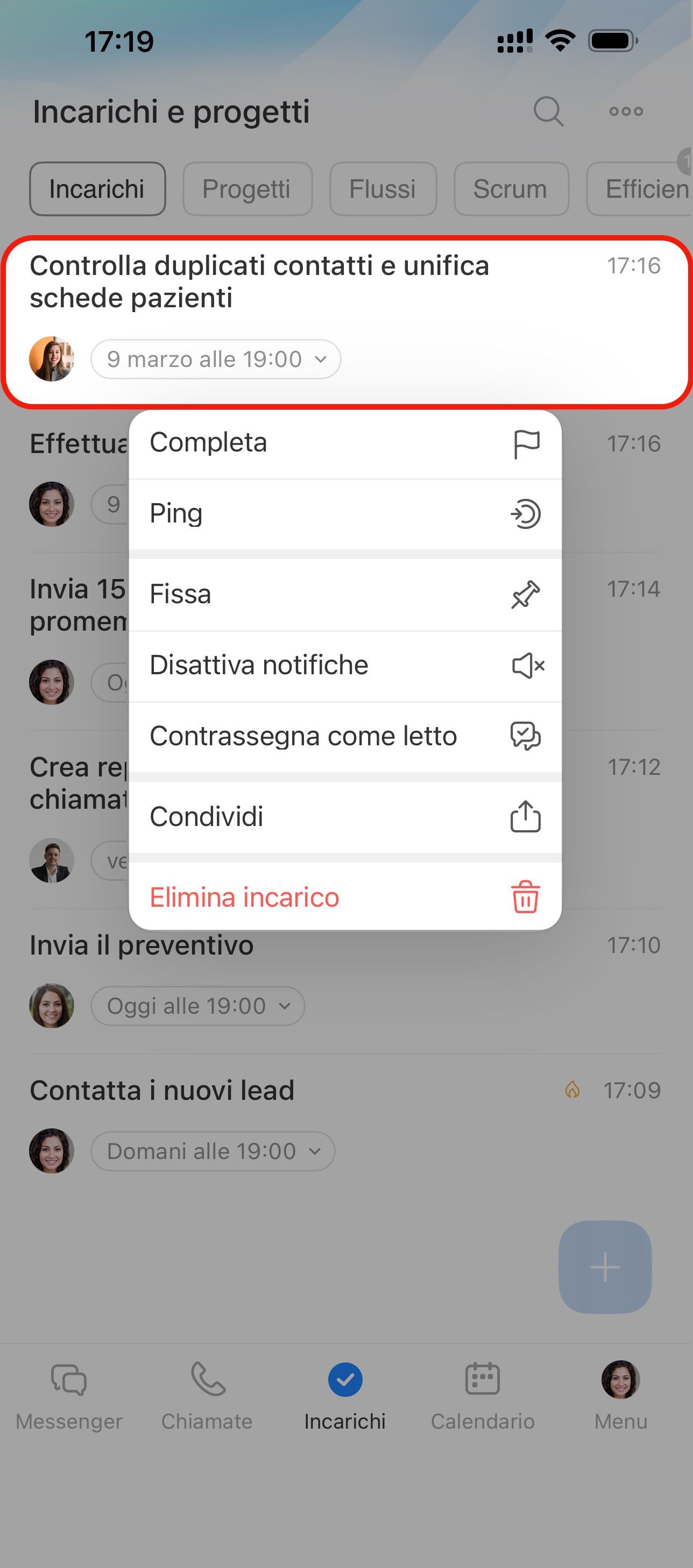 Tocca e tieni premuta una degli incarichi nell'elenco per aprire il menu delle azioni: