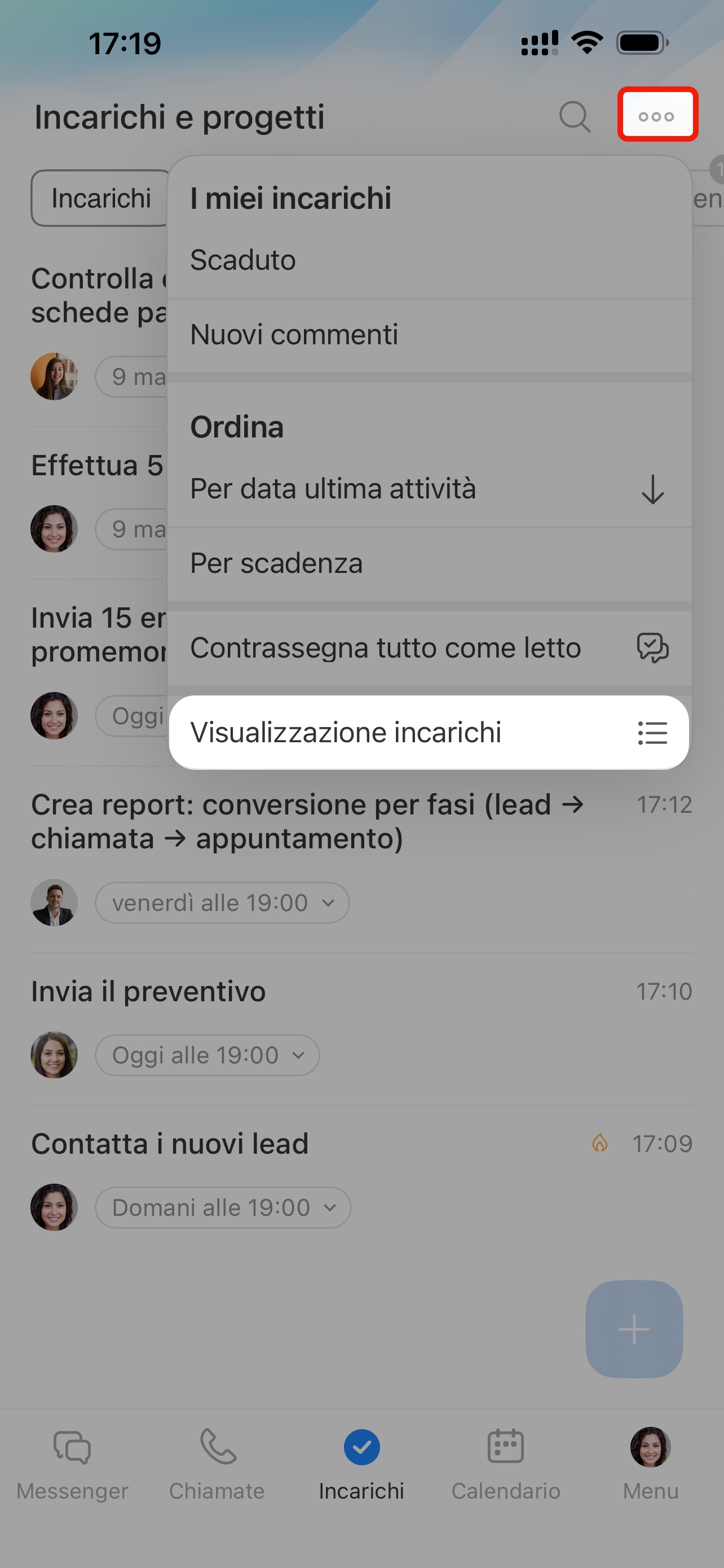 Per cambiare la modalità, fai clic sul pulsante Tre punti (...) > Visualizzazione incarichi.