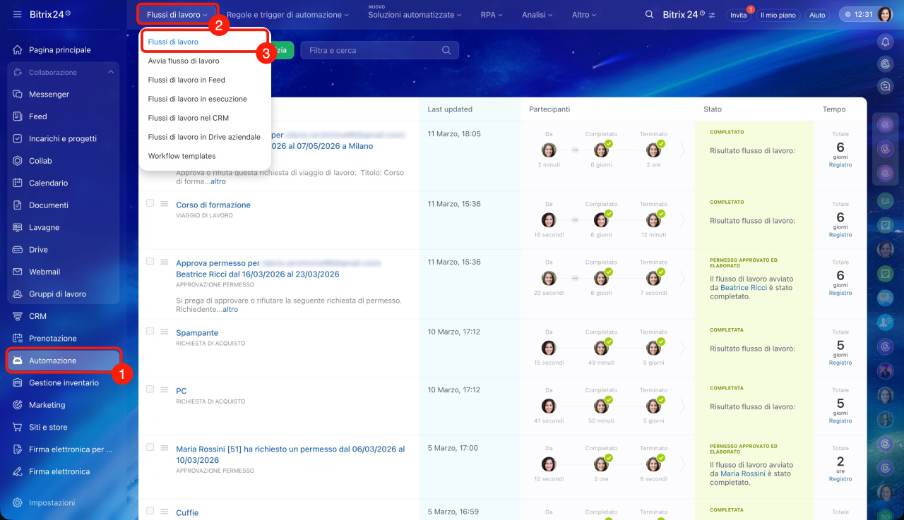 - I flussi di lavoro automatizzano le attività di routine e ripetitive. Semplificano l’approvazione dei documenti in azienda, la comunicazione con i clienti e il monitoraggio delle vendite.