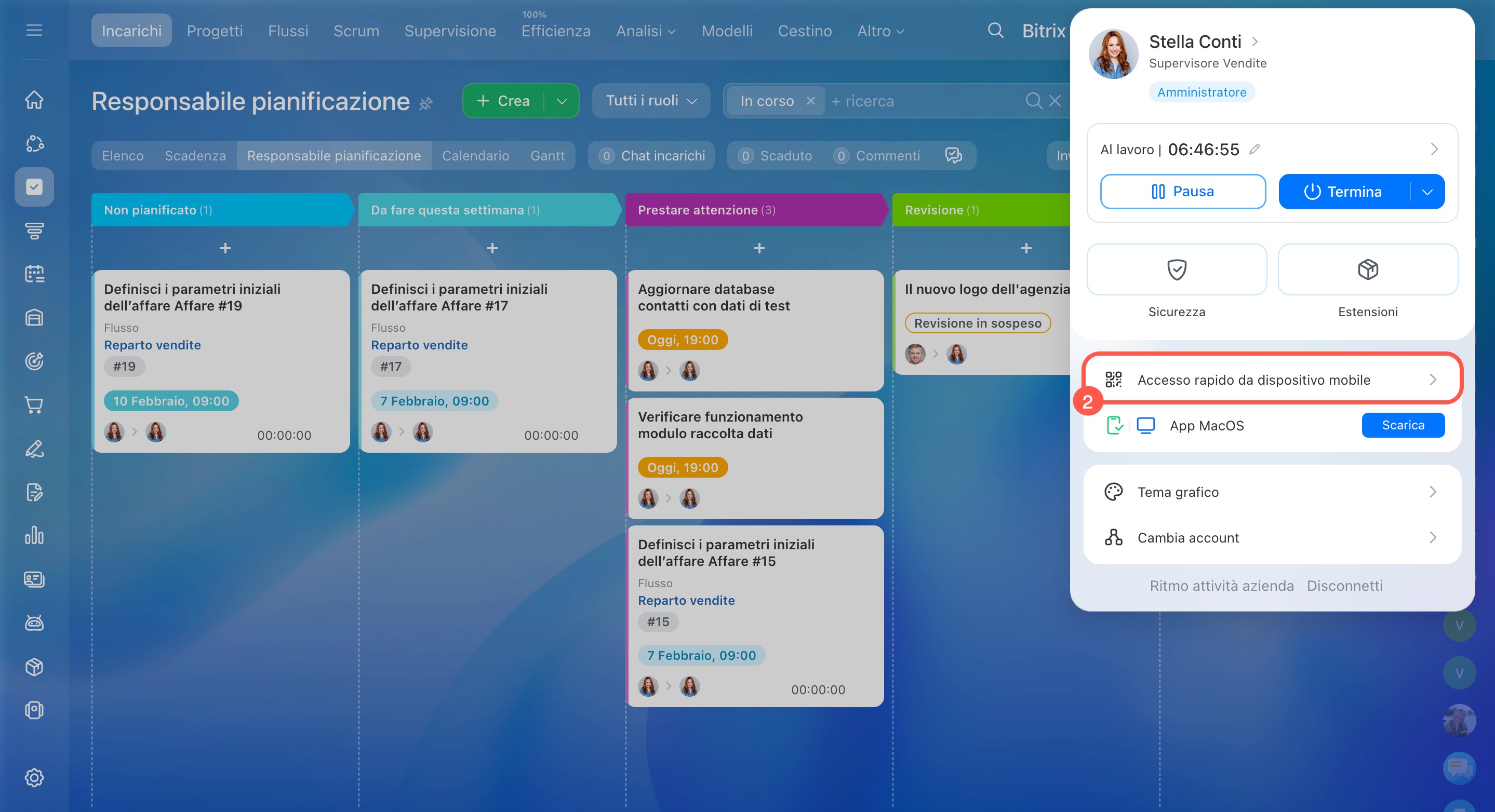 Utilizza l'app mobile di Bitrix24 per inviare documenti ai tuoi clienti, rimanere in contatto con i tuoi colleghi e restare aggiornato sugli eventi aziendali, anche fuori dall'ufficio.