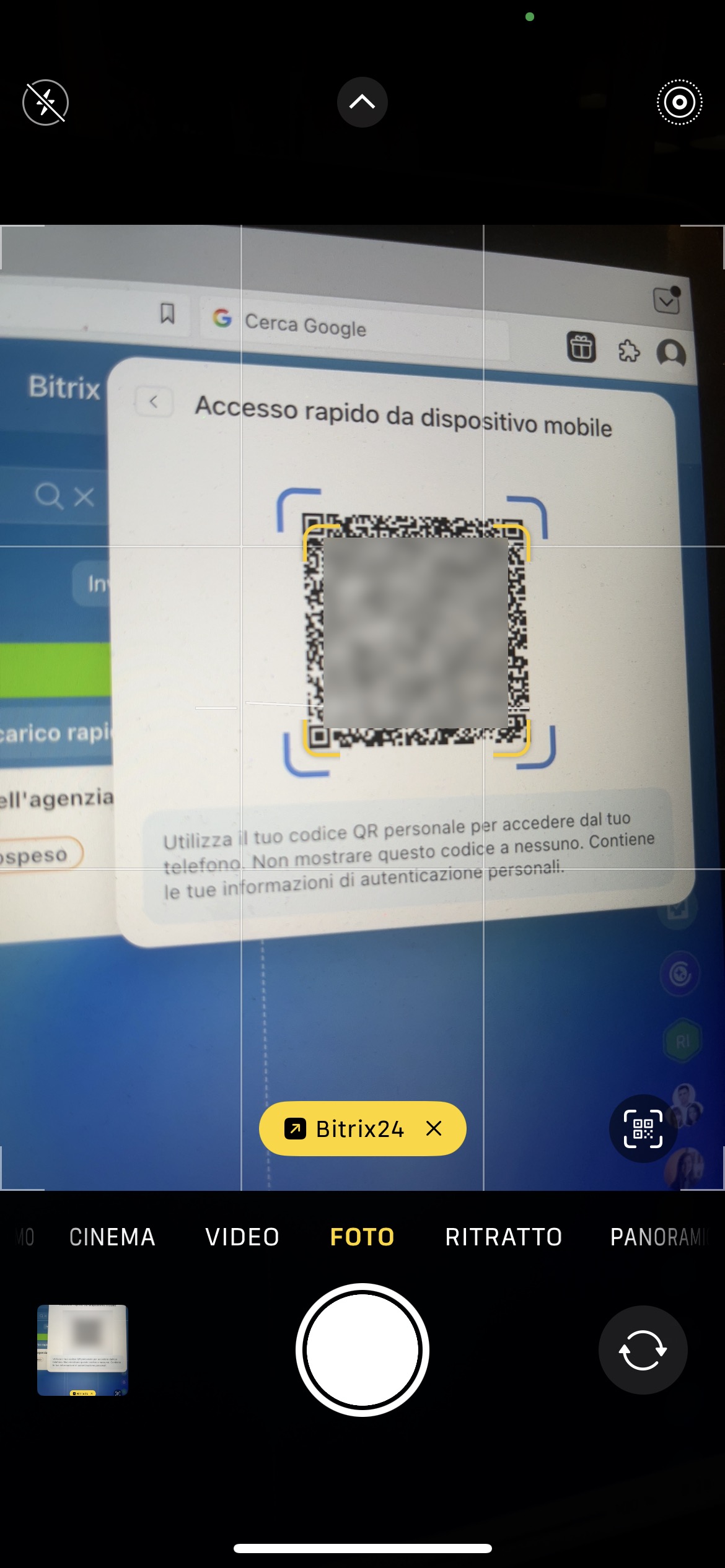 Gli utenti che sono già autorizzati nella versione web o nell'app di Bitrix24 possono accedere all'app mobile utilizzando il codice QR. In questo caso non è necessario inserire il nome utente o la password.