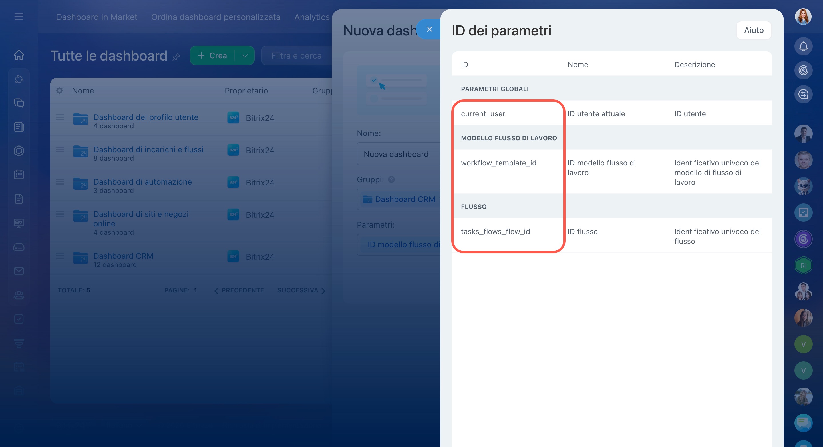 Dopo aver aggiunto un parametro, puoi collegare la dashboard all’analisi dello strumento desiderato. Ad esempio, utilizzando il parametro ID flusso, la dashboard sarà accessibile facendo clic sullo stato del flusso. Se aggiungi il parametro ID modello flusso di lavoro, la dashboard apparirà nella scheda con il registro del flusso di lavoro.