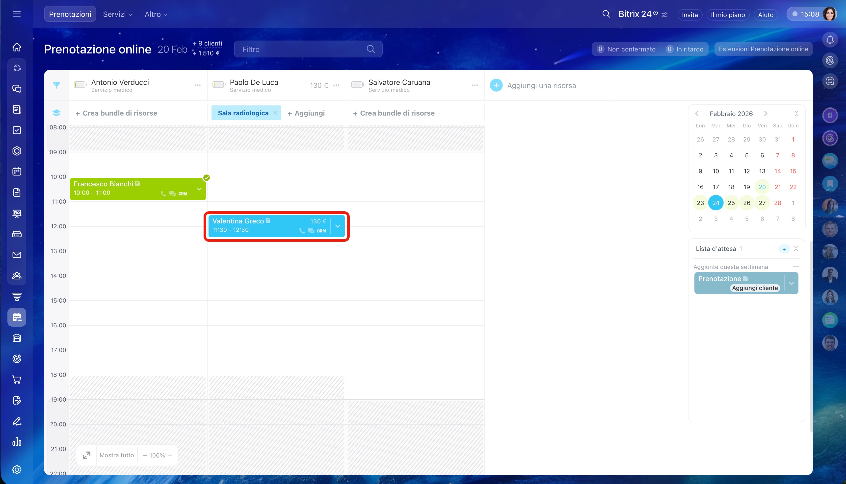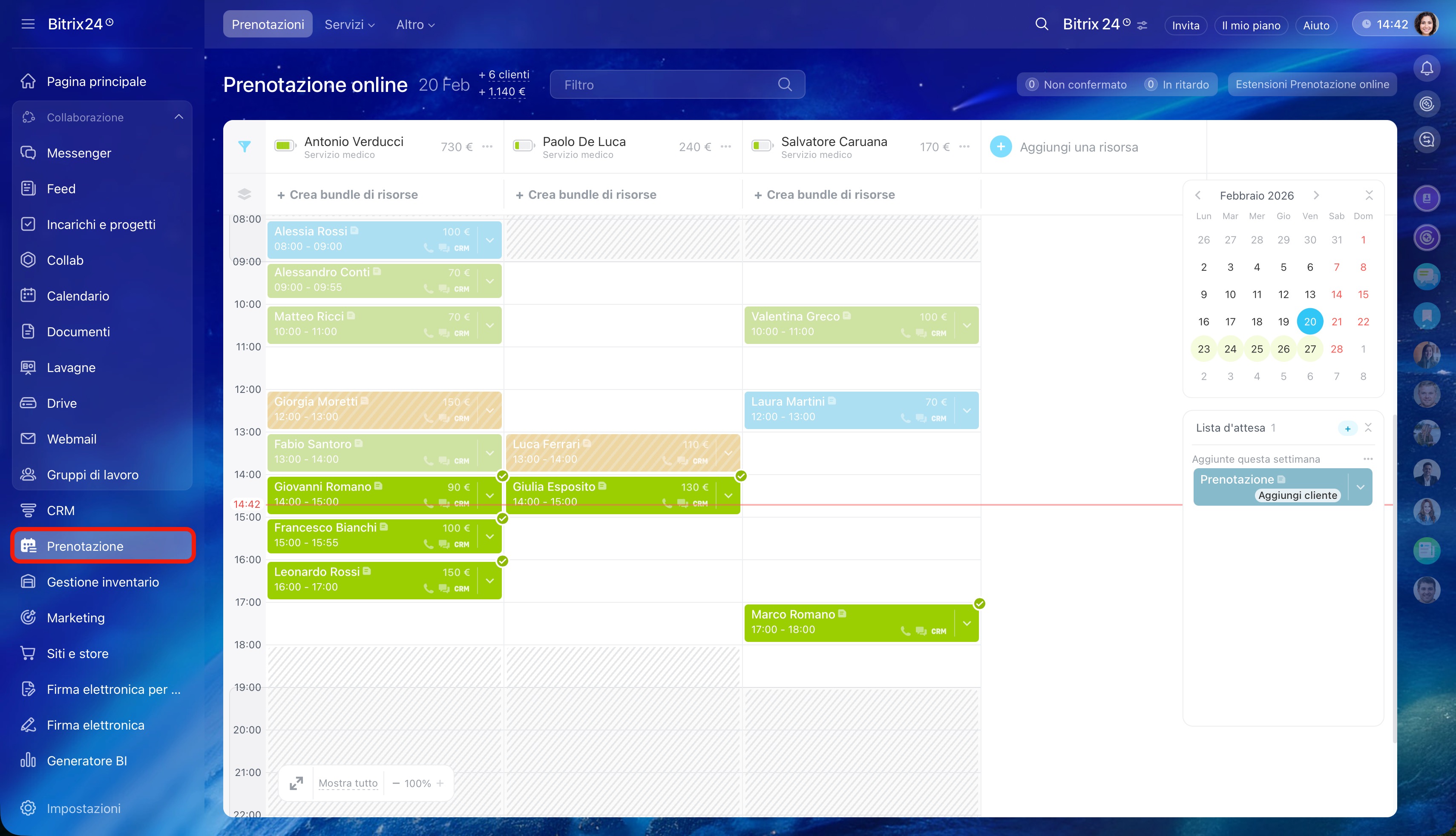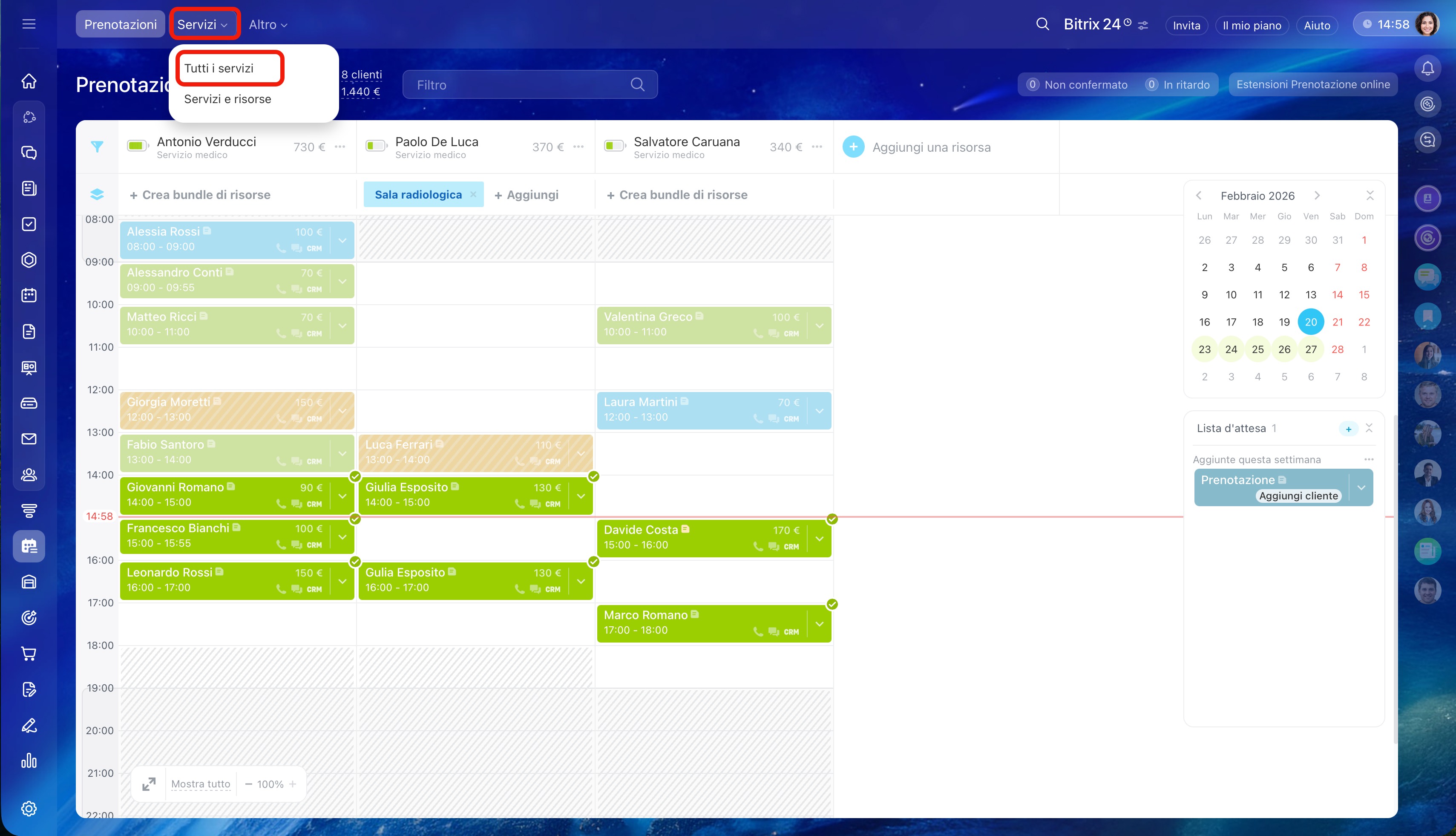 - Tutti i dipendenti possono prenotare un appuntamento con i clienti. Per farlo, vai alla sezione Prenotazione.