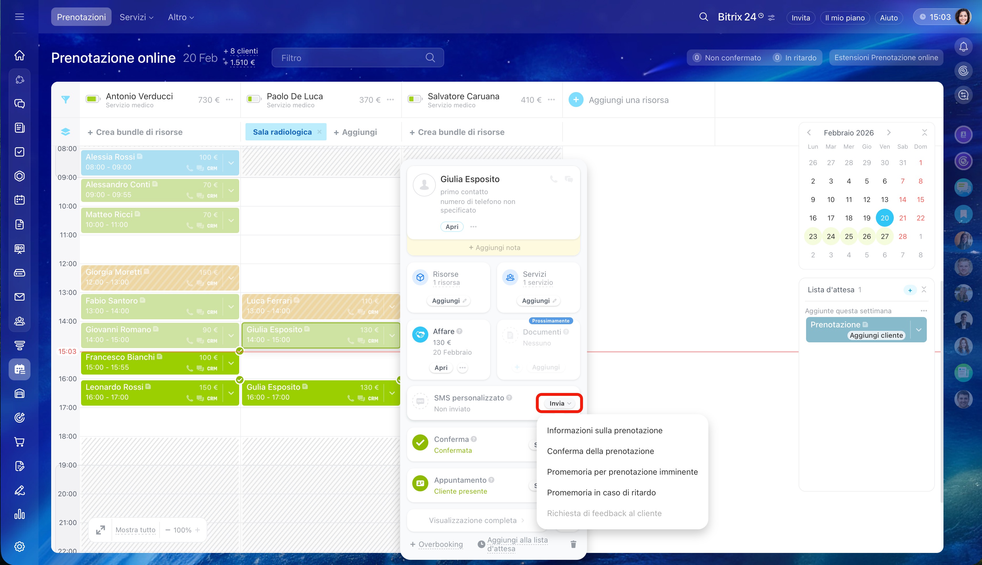- Puoi inviare promemoria ai clienti tramite SMS.