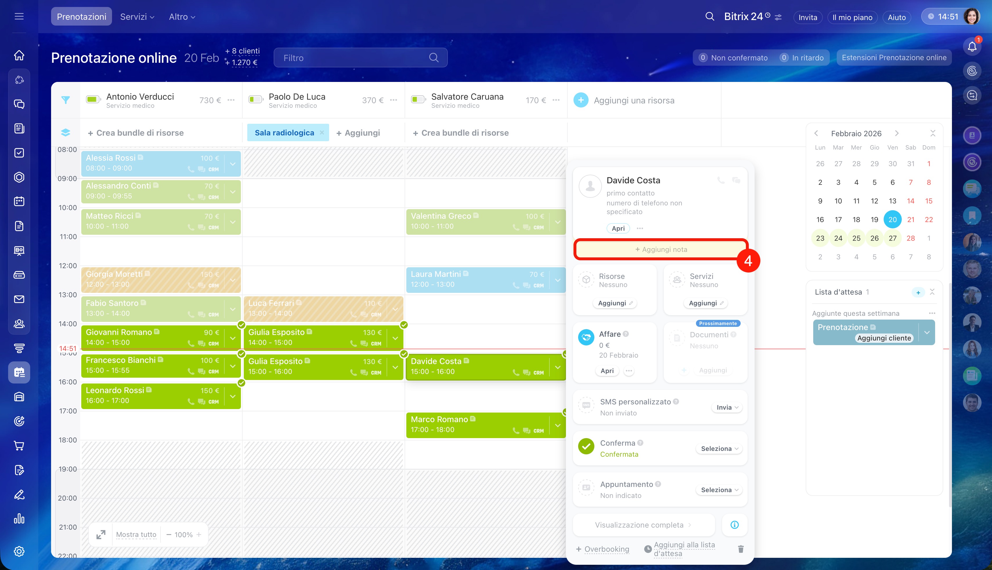 - Clicca su Aggiungi cliente nel blocco della prenotazione.