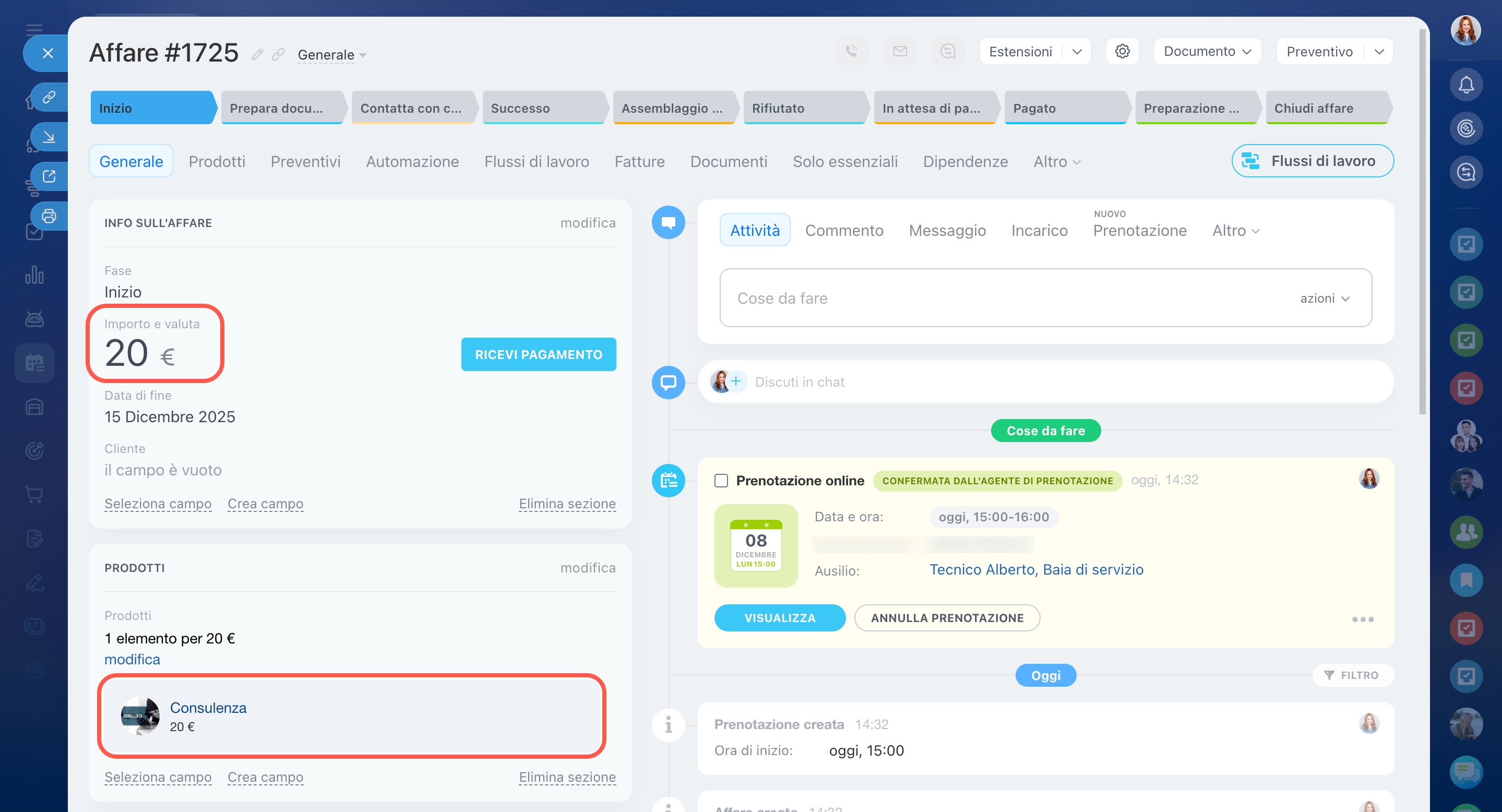Puoi collegare un appuntamento a un affare specifico nel CRM o crearne uno nuovo.
