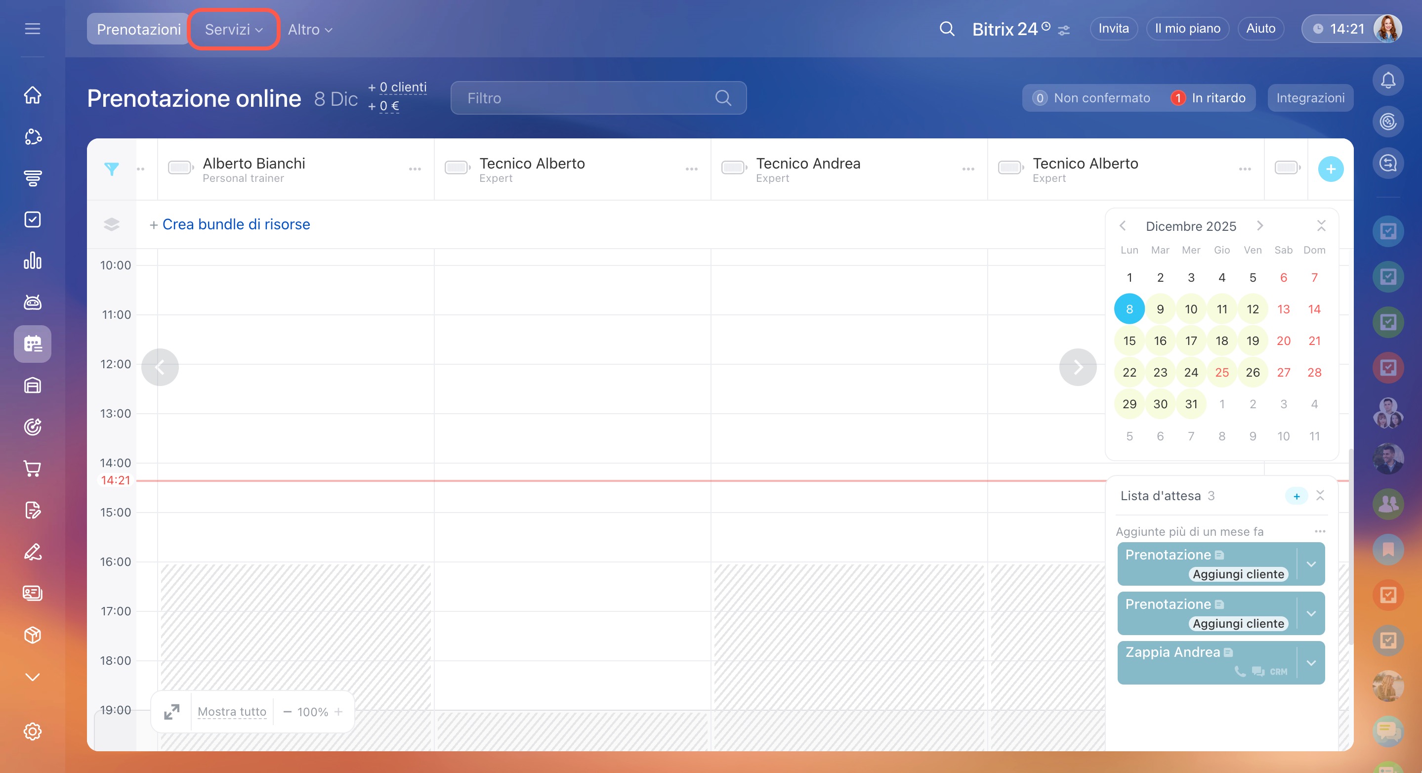 Qualsiasi dipendente di Bitrix24 può fissare appuntamenti con i clienti. Per farlo, vai nella sezione Prenotazione online.