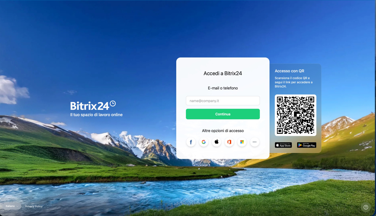 Questo articolo ti guiderà su come accedere al tuo Bitrix24 utilizzando un codice QR. Questo metodo è utile se lavori abitualmente con l'app mobile di Bitrix24 e desideri accedere da un browser o Bitrix24 MessengerBitrix24 Messenger è un'app per la comunicazione interna dell'azienda. Ci sono chat, videochiamate, CoPilot e altri strumenti di Bitrix24..