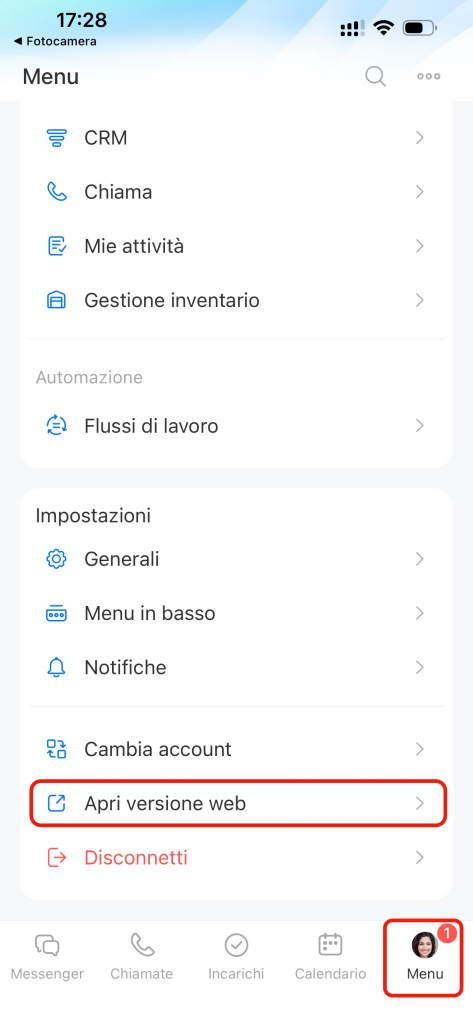 Apri l'app mobile di Bitrix24 e segui questi passaggi: